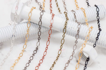 Cable Chain Small Size - Multiple Finishes Available - Measures 6.4mm x 3mm - Sold by the Foot - CH 260