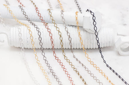 Cable Chain for Necklaces - XS 2mm Size - Multiple Colors - Per Foot CH-825