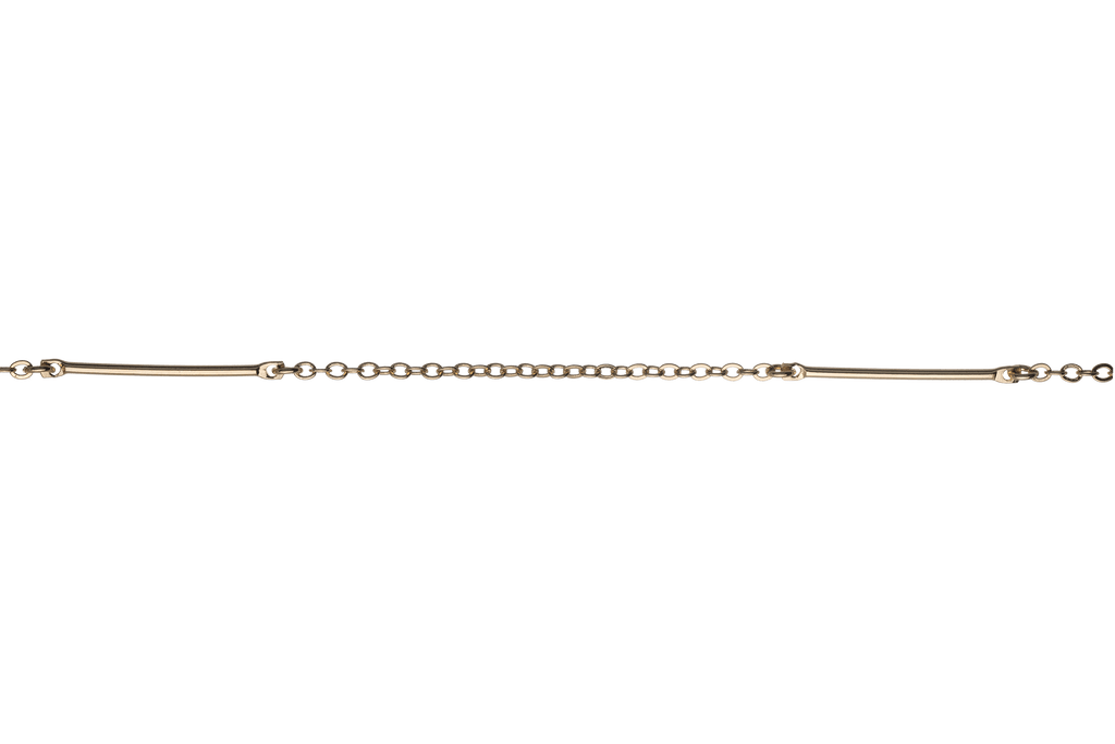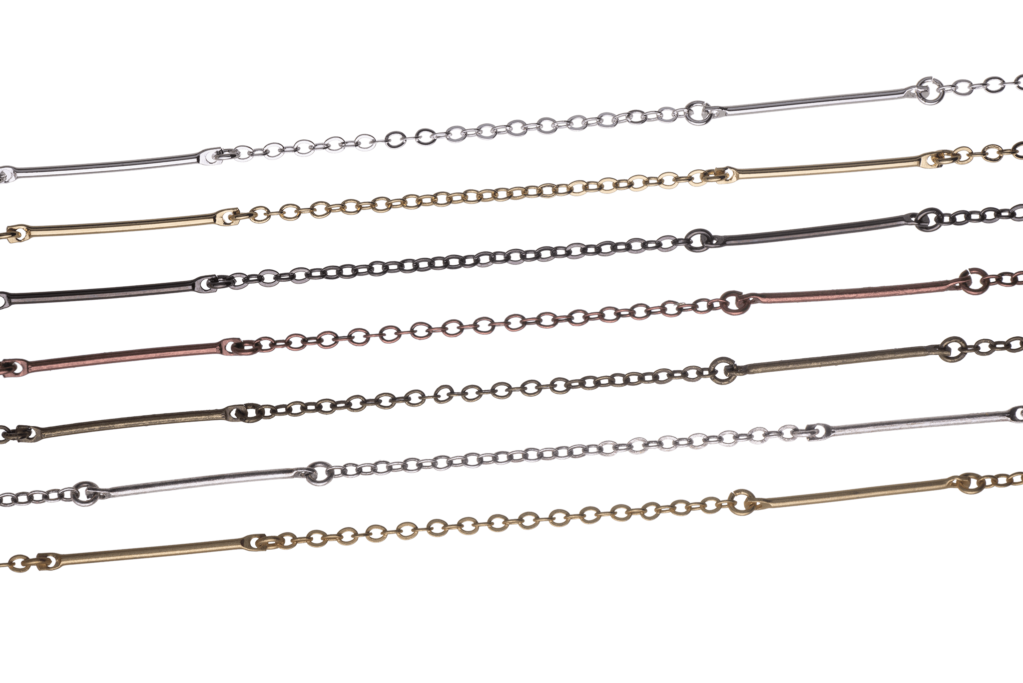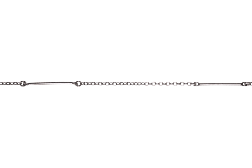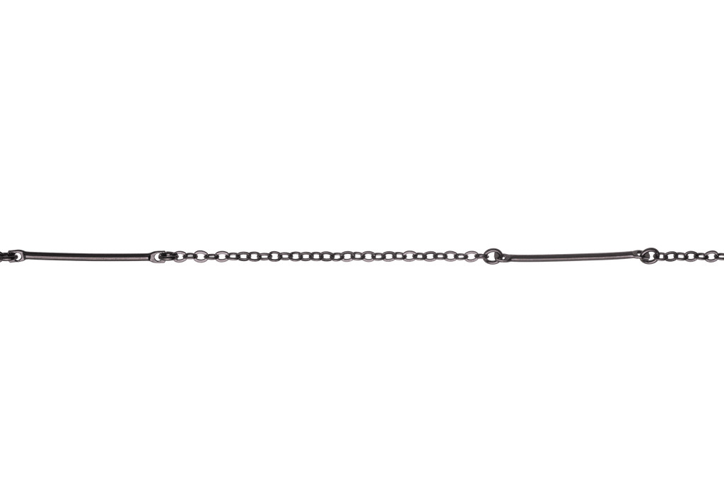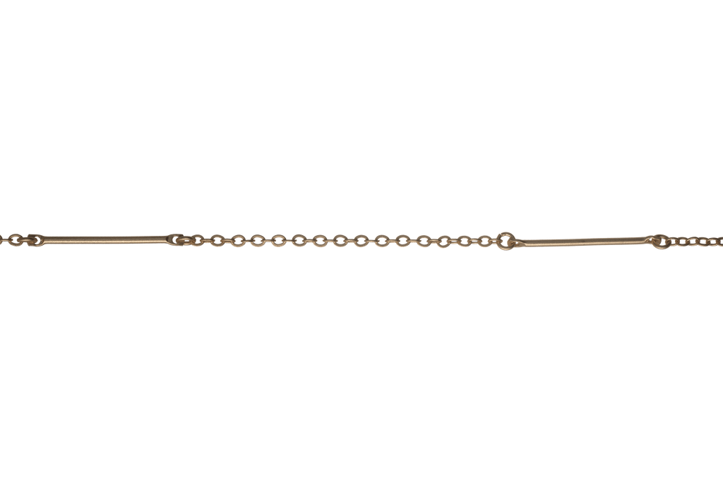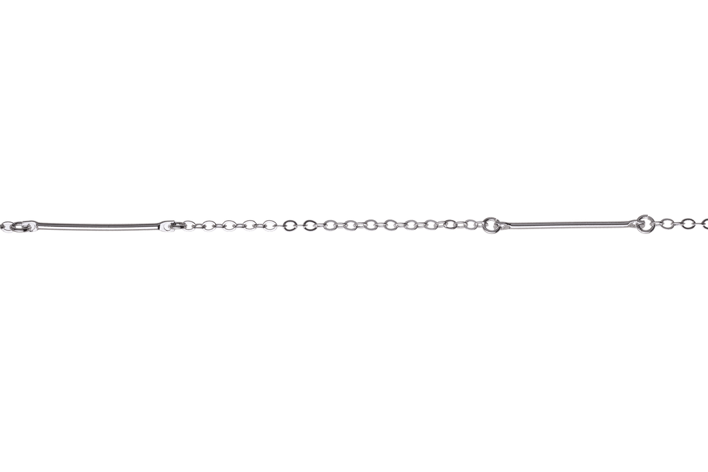This trendy 25mm bar and cable chain is simple yet elegant. This chain is available in many finishes and the chain is made from a solid hypoallergenic brass core. It is plated nickel-free and is lead-safe.