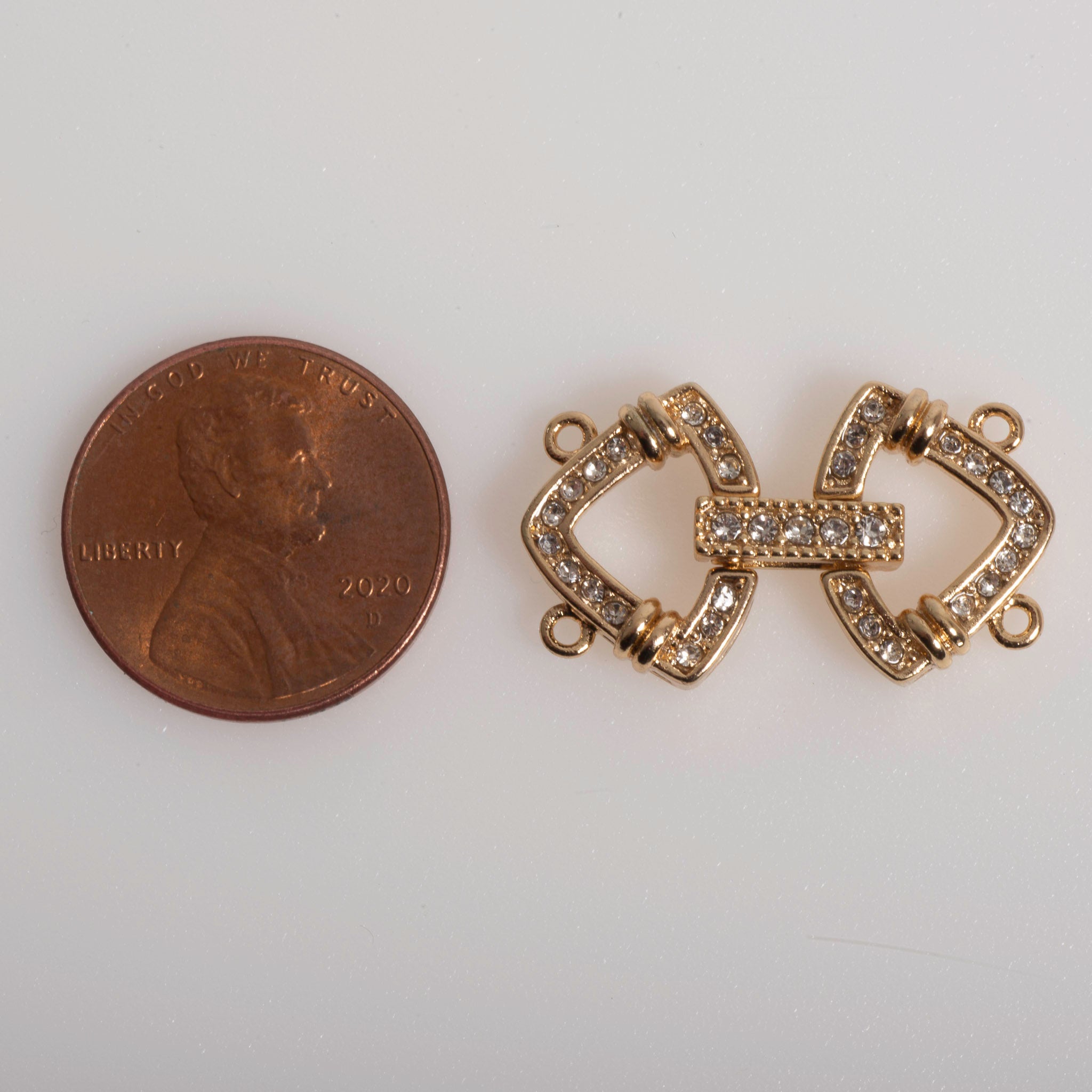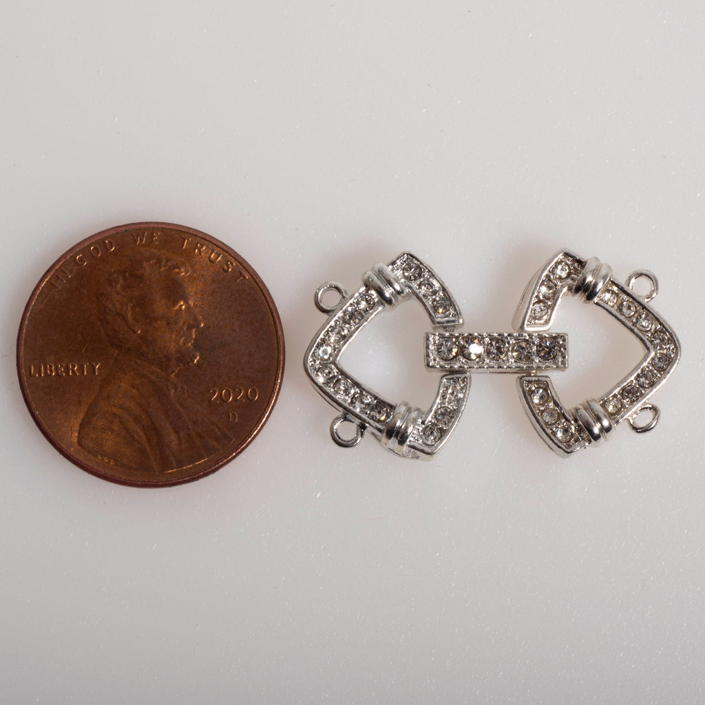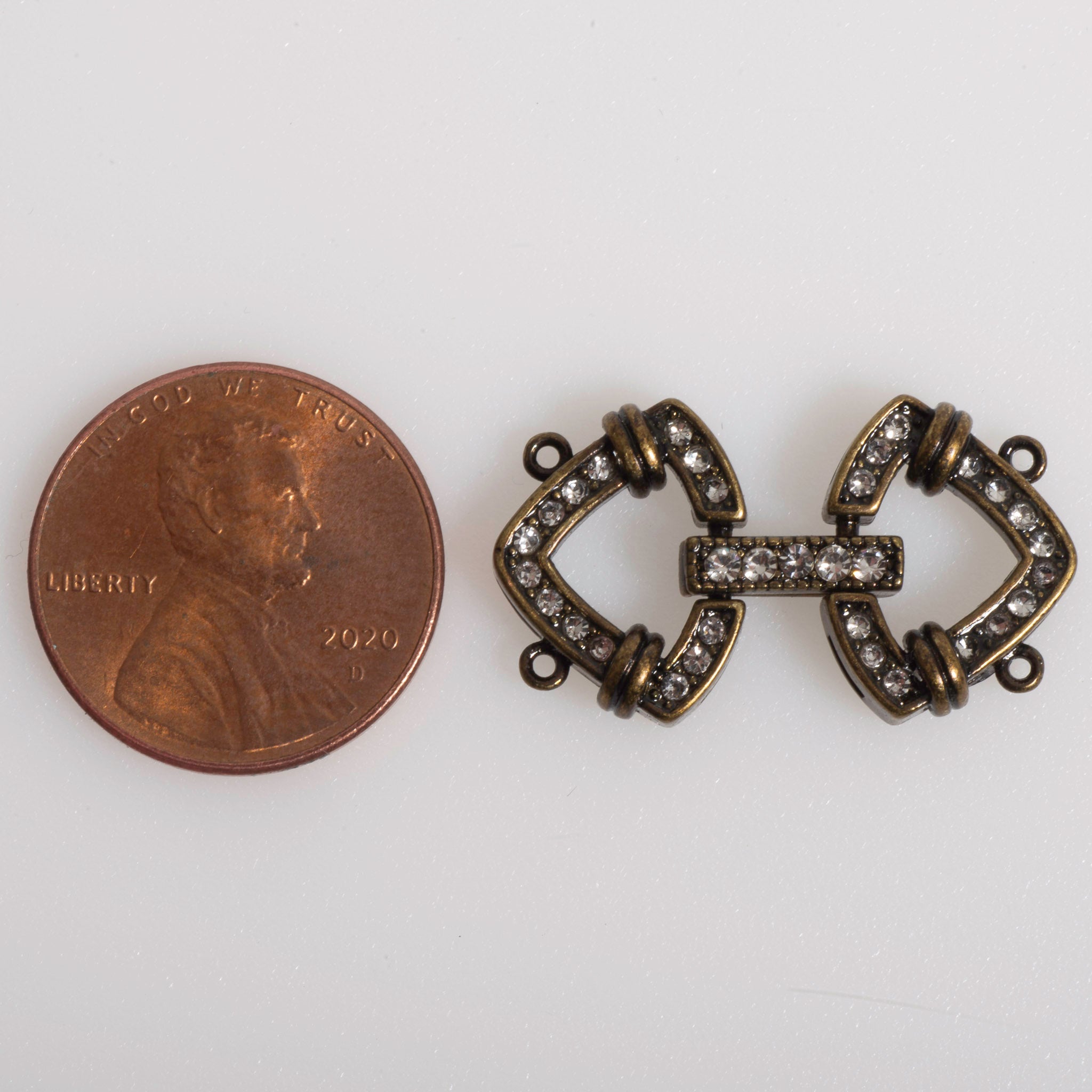 Accent your jewelry with our 25mm x 14.5mm Curved Triangle Pavé Crystal Buckle Clasp, a striking brass clasp featuring a curved triangle design with pavé-set crystals and two loop ends for versatile connections. Perfect for necklaces, bracelets, or adjustable designs, this clasp is available in multiple finishes to add a touch of glamour. Sold Individually by Continental Bead Suppliers, it’s a chic choice for hobbyists and designers across the USA and Canada, blending brass durability with sparkling crystal elegance.