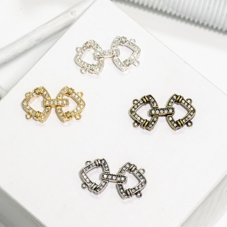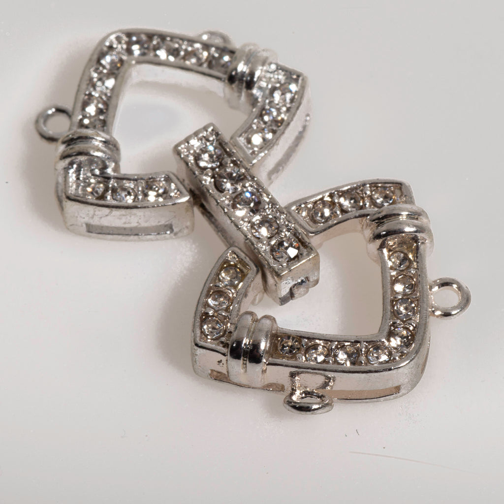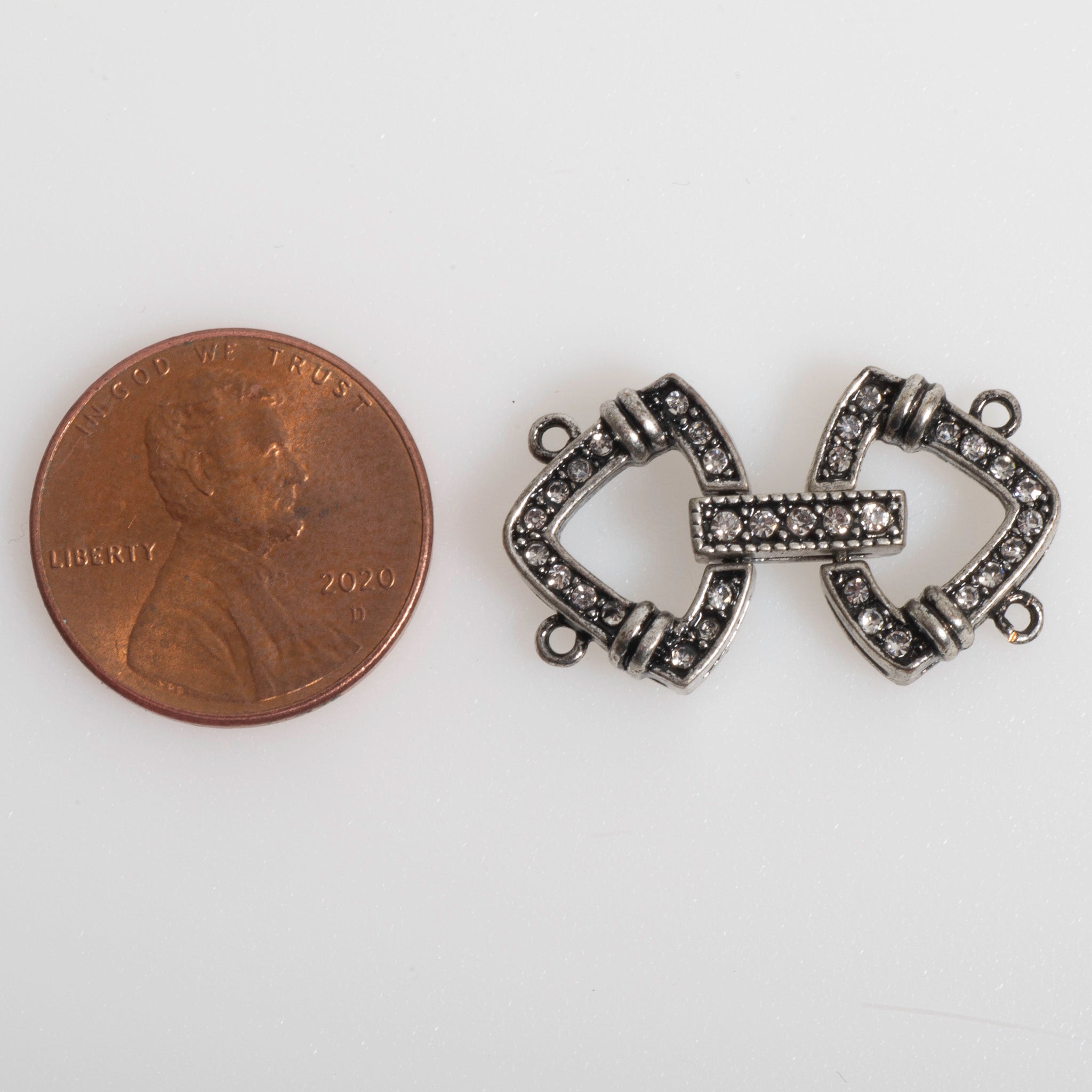 Accent your jewelry with our 25mm x 14.5mm Curved Triangle Pavé Crystal Buckle Clasp, a striking brass clasp featuring a curved triangle design with pavé-set crystals and two loop ends for versatile connections. Perfect for necklaces, bracelets, or adjustable designs, this clasp is available in multiple finishes to add a touch of glamour. Sold Individually by Continental Bead Suppliers, it’s a chic choice for hobbyists and designers across the USA and Canada, blending brass durability with sparkling crystal elegance.