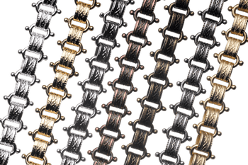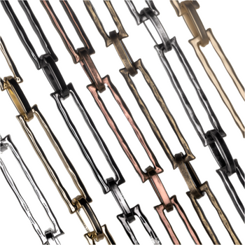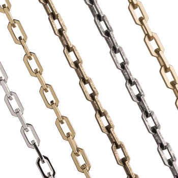 This stunning designer specialty chain features a unique U shape with 4mm ball details on the ends. This chain is made from round 12 gauge wire and measures 15.8mm long by 7.2mm wide. This chain is made from solid brass and electro-plated lead-safe and nickel free. We then coat it with our e-coating to protect the finish.