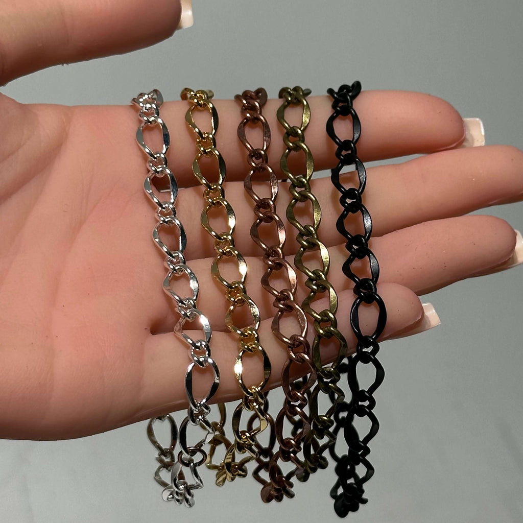 Elevate your jewelry designs with the distinctive look of Figaro chains, known for their unique pattern of alternating long and short links. These chains are a popular choice for both classic and contemporary jewelry pieces, making them perfect for creating necklaces, bracelets, and anklets with a touch of elegance. Our collection of Figaro chains offers various materials, finishes, and sizes, ensuring you find the perfect chain to complement your style.