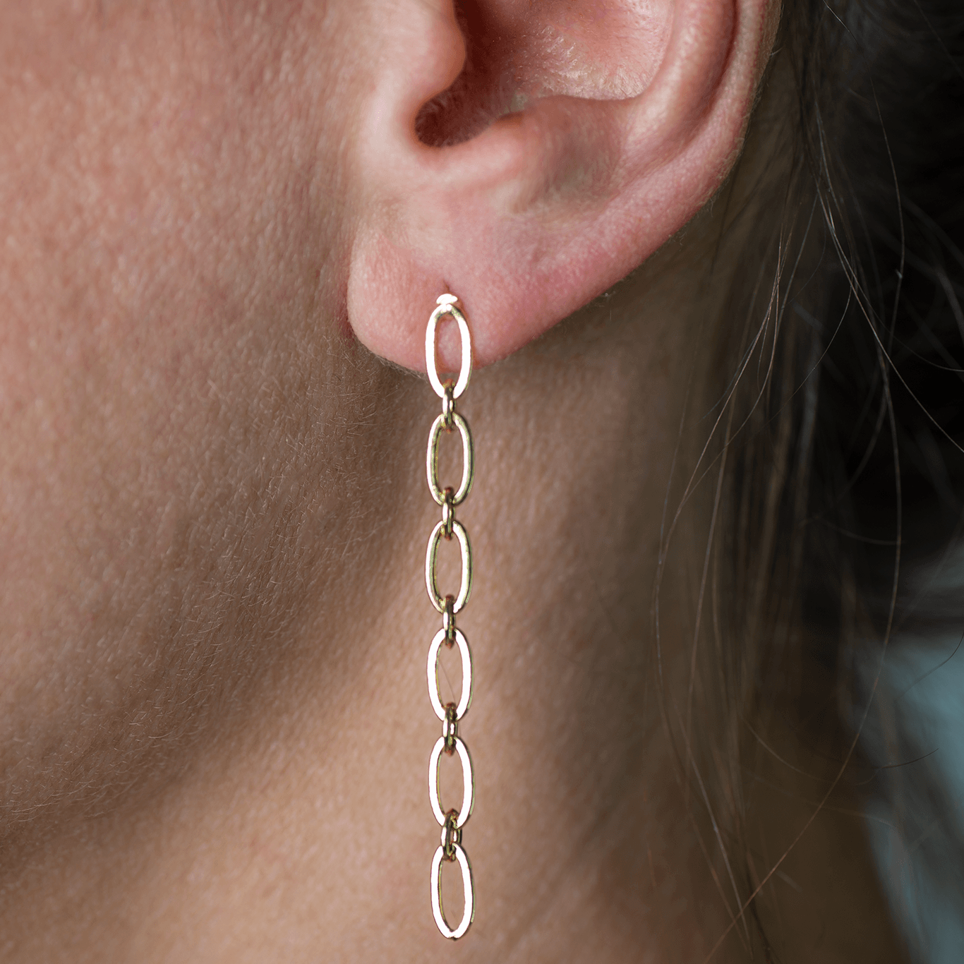 Elevate your jewelry collection with our 4.2mm Flat Oval Cable Chain Earring (KE-29). This elegant earring features a stylish flat oval cable chain design and comes with an earnut back for a secure fit.