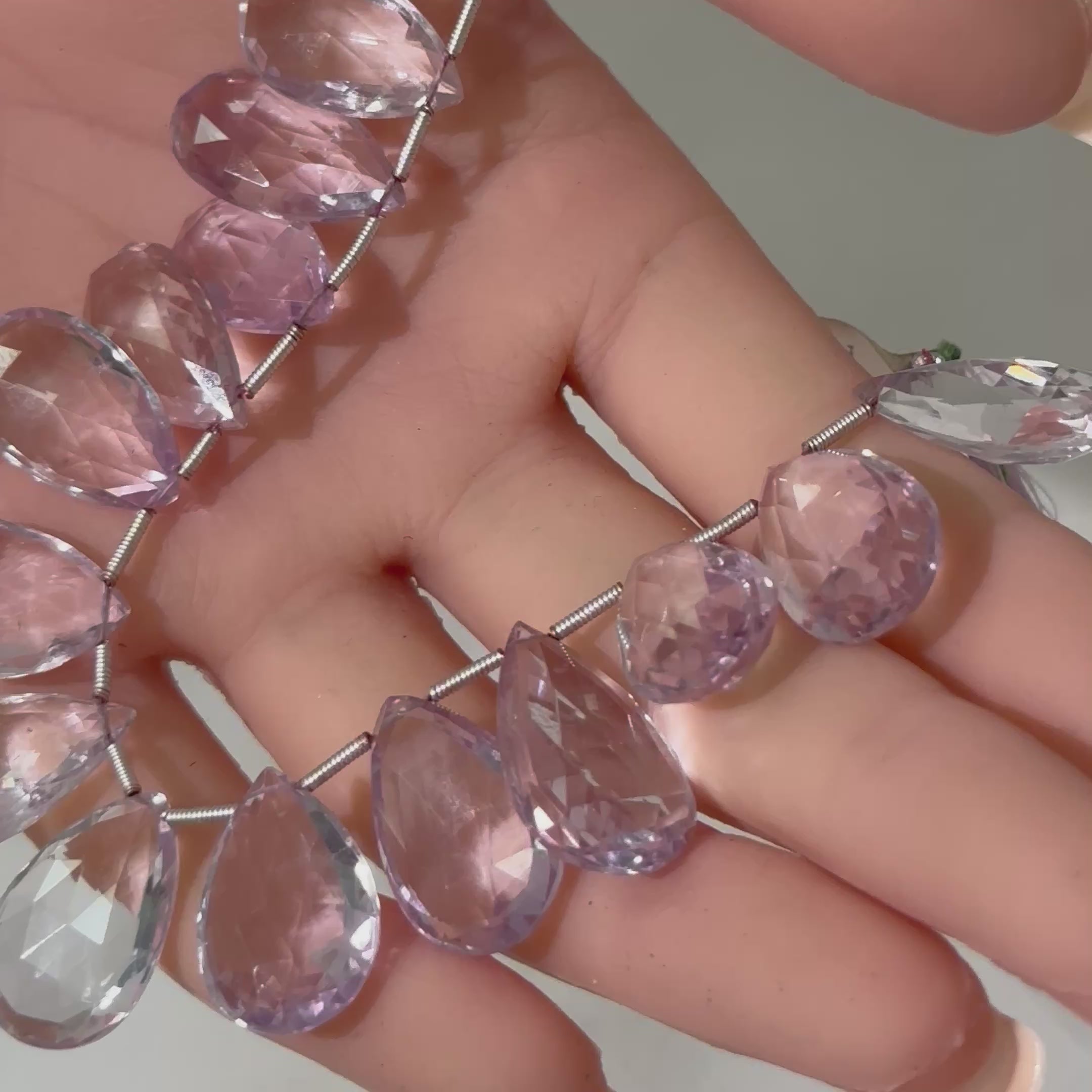 This extra-large Pink Amethyst teardrop strand is an absolute showstopper. Featuring bold, faceted drops with soft lavender-pink tones, this is the kind of strand designers build an entire piece around.