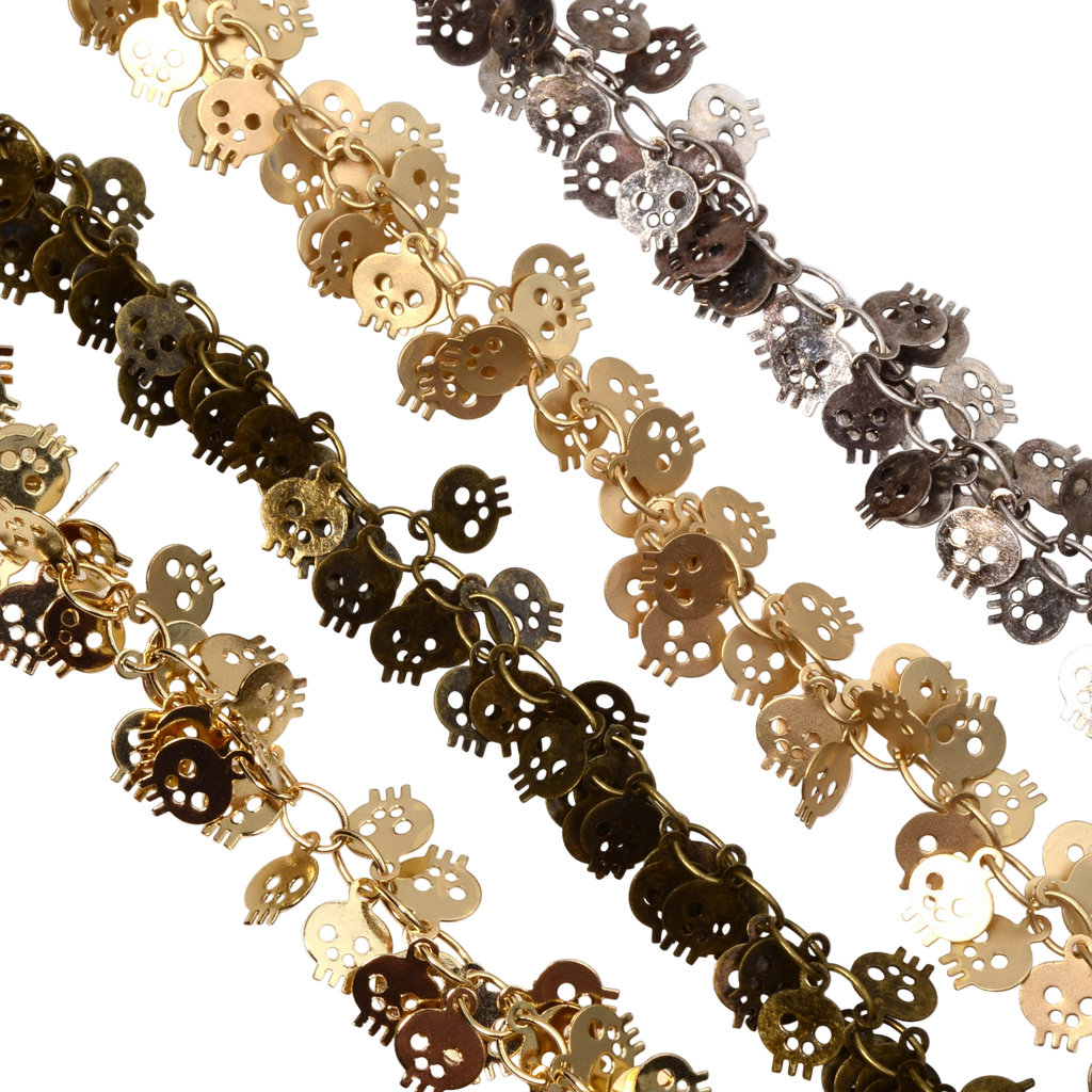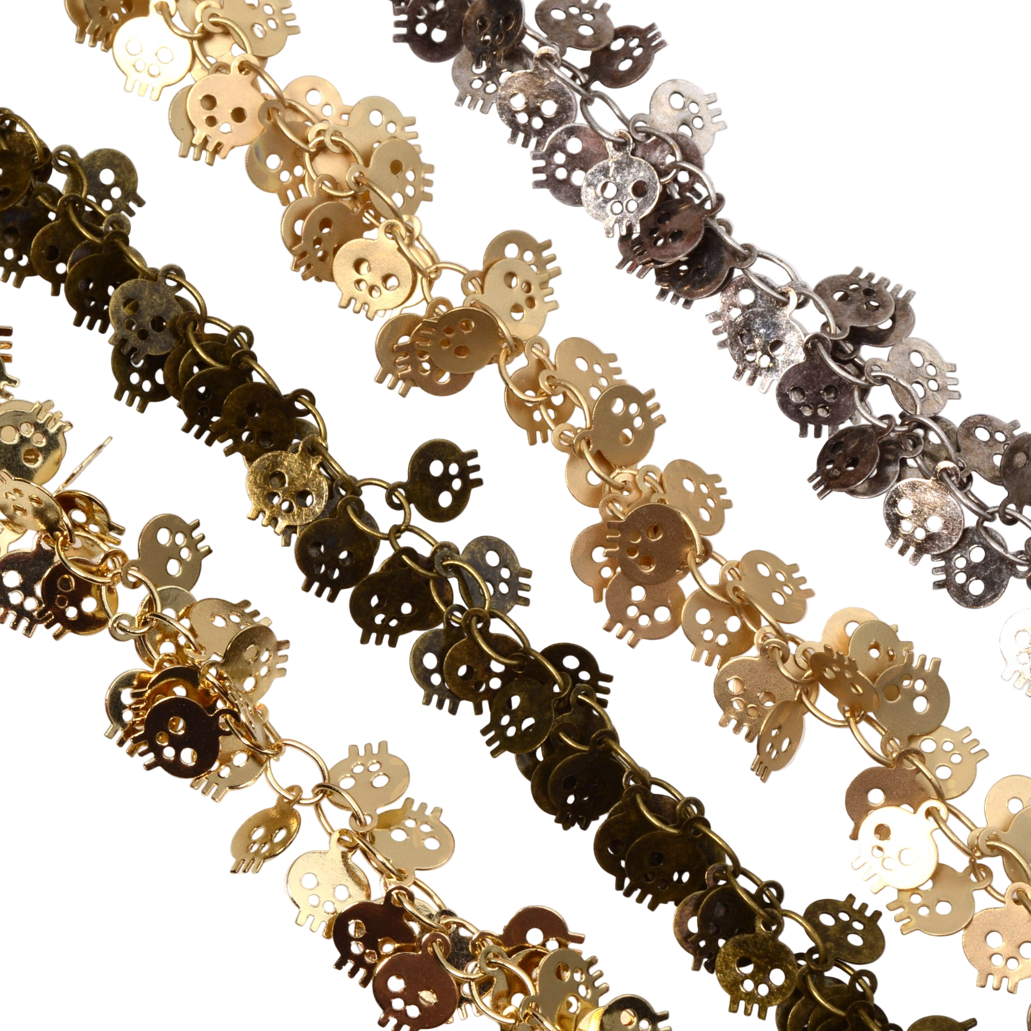 Spook up your jewelry with our 6mm Halloween Dangling Skull Chain, a festive brass chain featuring dangling skull accents for a playful, eerie vibe. Perfect for Halloween-themed necklaces, bracelets, or seasonal designs, this chain is available in multiple finishes to suit your spooky style. Sold by the Foot by Continental Bead Suppliers, it’s a hauntingly fun choice for hobbyists and designers across the USA and Canada, blending brass durability with festive flair.