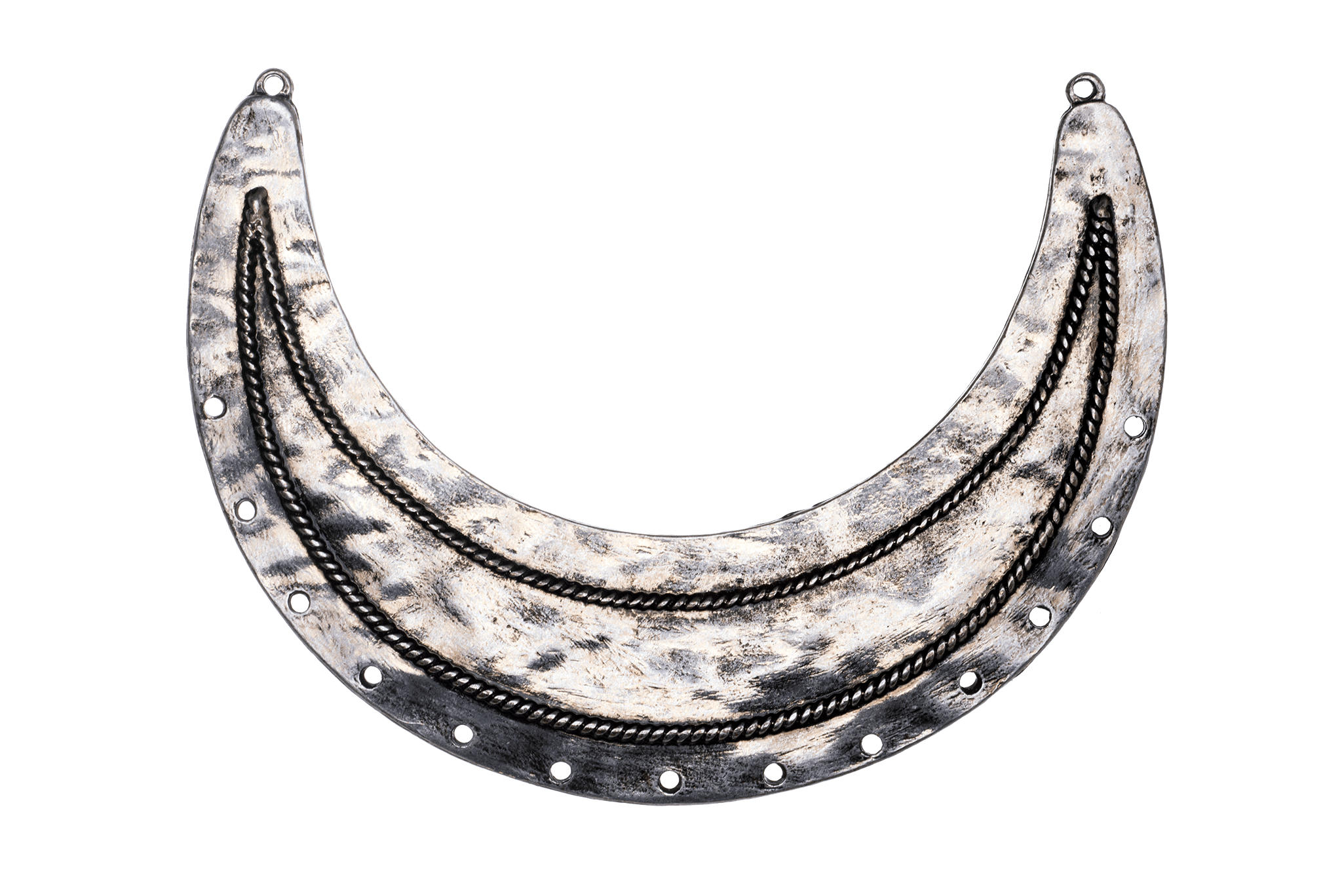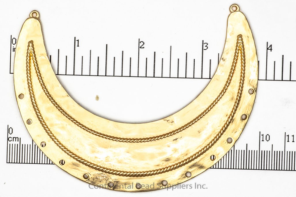 Make a bold statement with our 84mm Large Curved Collar Pendant (K94). This beautifully designed pendant features a unique curved shape, perfect for creating eye-catching jewelry pieces. With two loops and thirteen holes, it offers versatile attachment options for your designs.