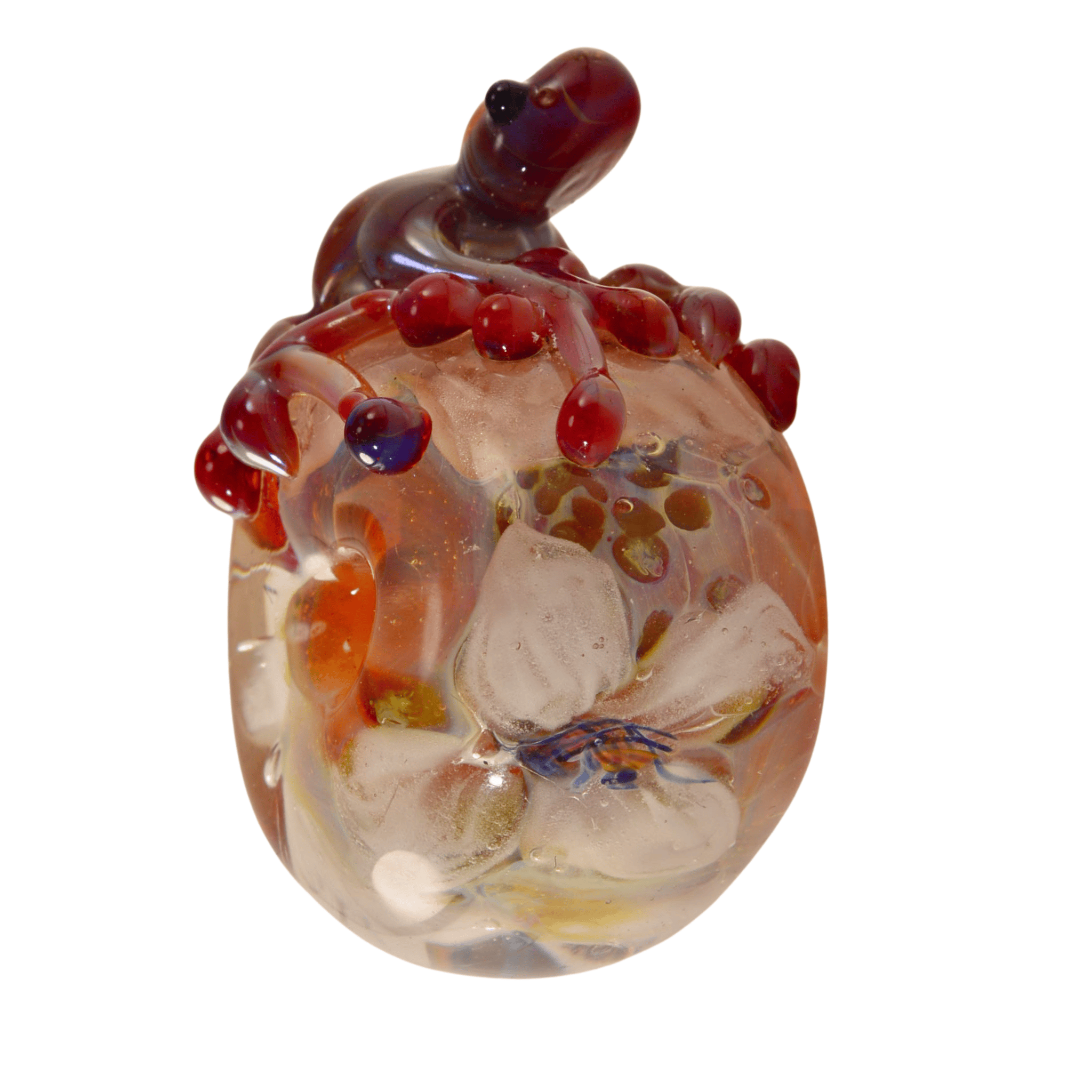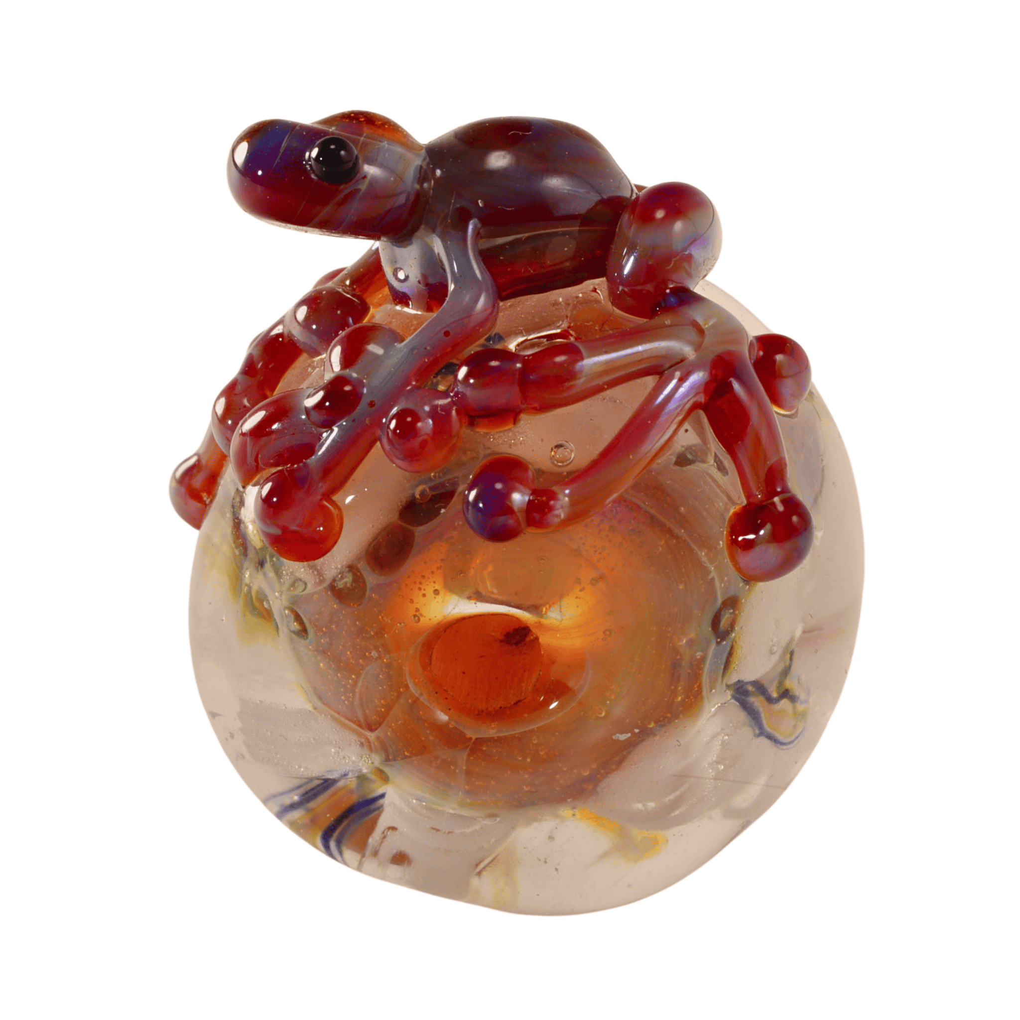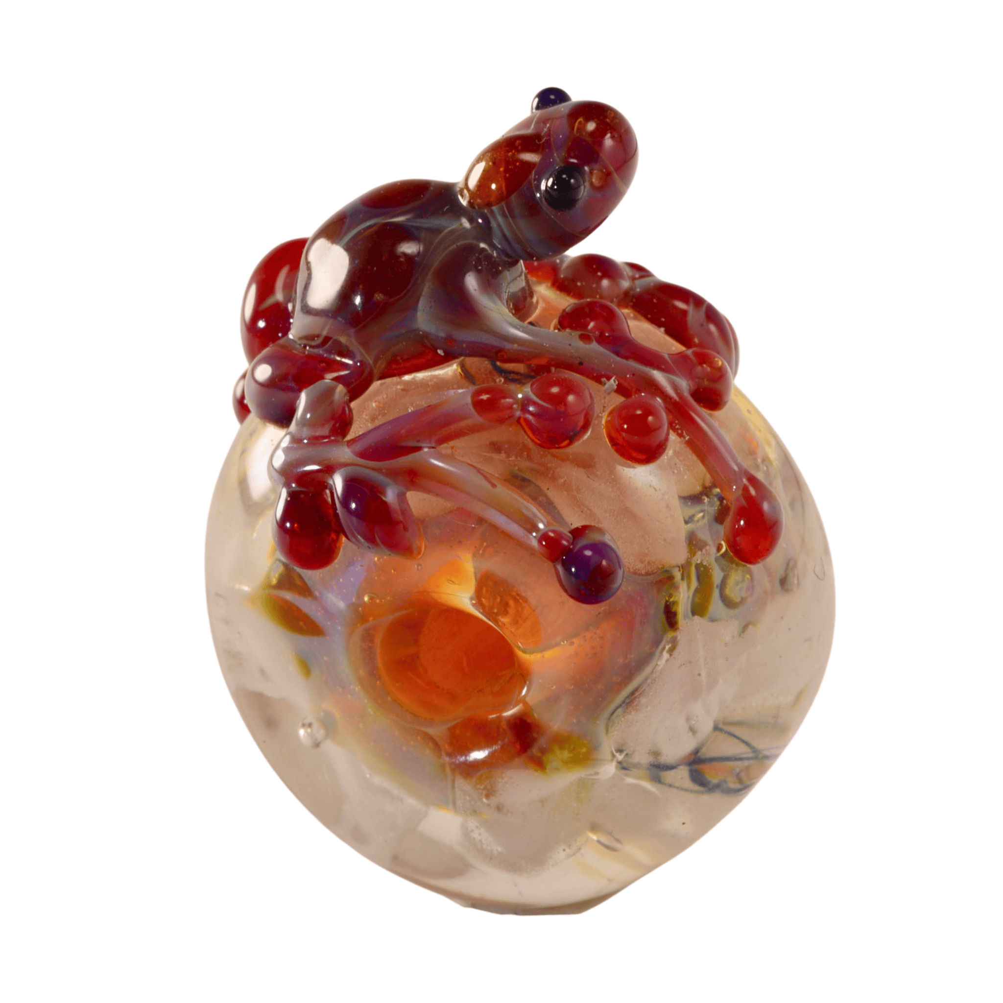 Each angle reveals new depth, from the internal flower to the sculptural frog detail wrapping naturally over the surface. Perfect for collectors, designers, or anyone who appreciates one of a kind artisan glass.
