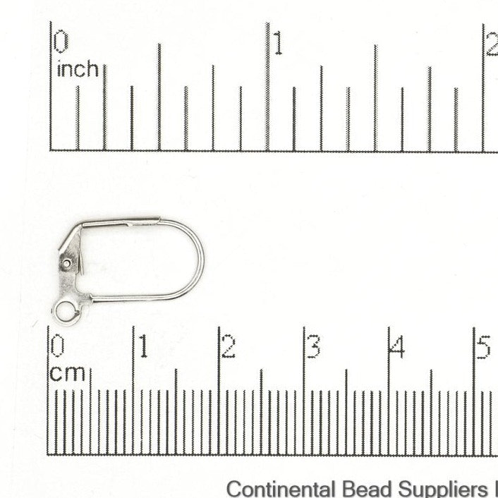 These lever-back ear wires measure 17mm x 11mm. They are made from solid stainless steel which contains less than 8% nickel. These ear wires are also 100% lead-safe and are sold by the dozen.