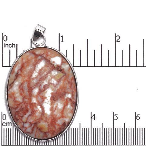 Add a striking touch to your jewelry collection with our 30mm x 40mm Red Picasso Jasper Oval Pendant (SP624). This exquisite pendant is crafted from semi-precious red picasso jasper, showcasing its vibrant colors and unique patterns.
