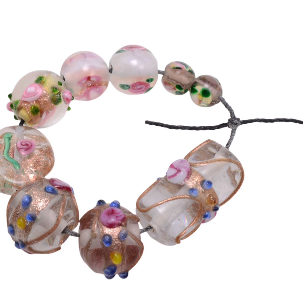 Clear Lampwork Glass Bead Set with Copper & Floral Details - 9 Mixed Beads