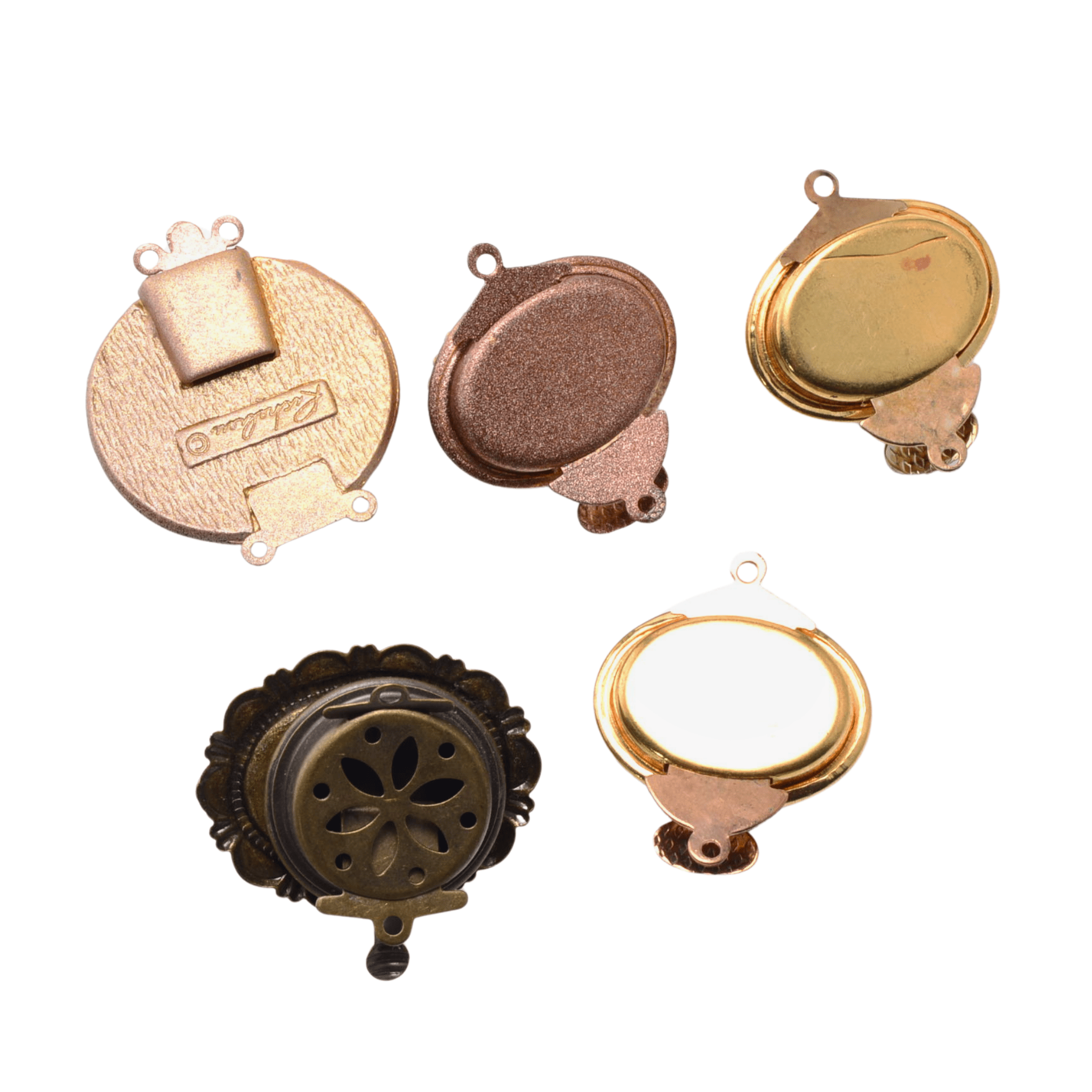 The collection includes four single-strand and one two-strand configuration, ranging in size from 22mm to 25mm and weighing a total of 34 grams. Each clasp features a reliable push box mechanism and is designed to be a visible and intentional part of the finished jewelry design.