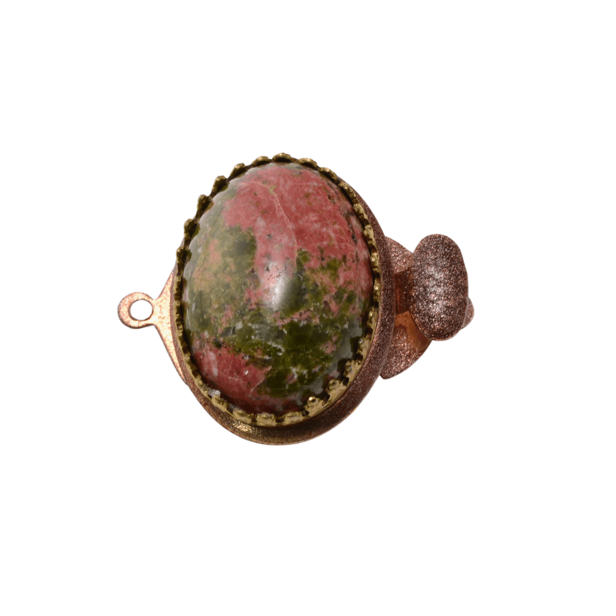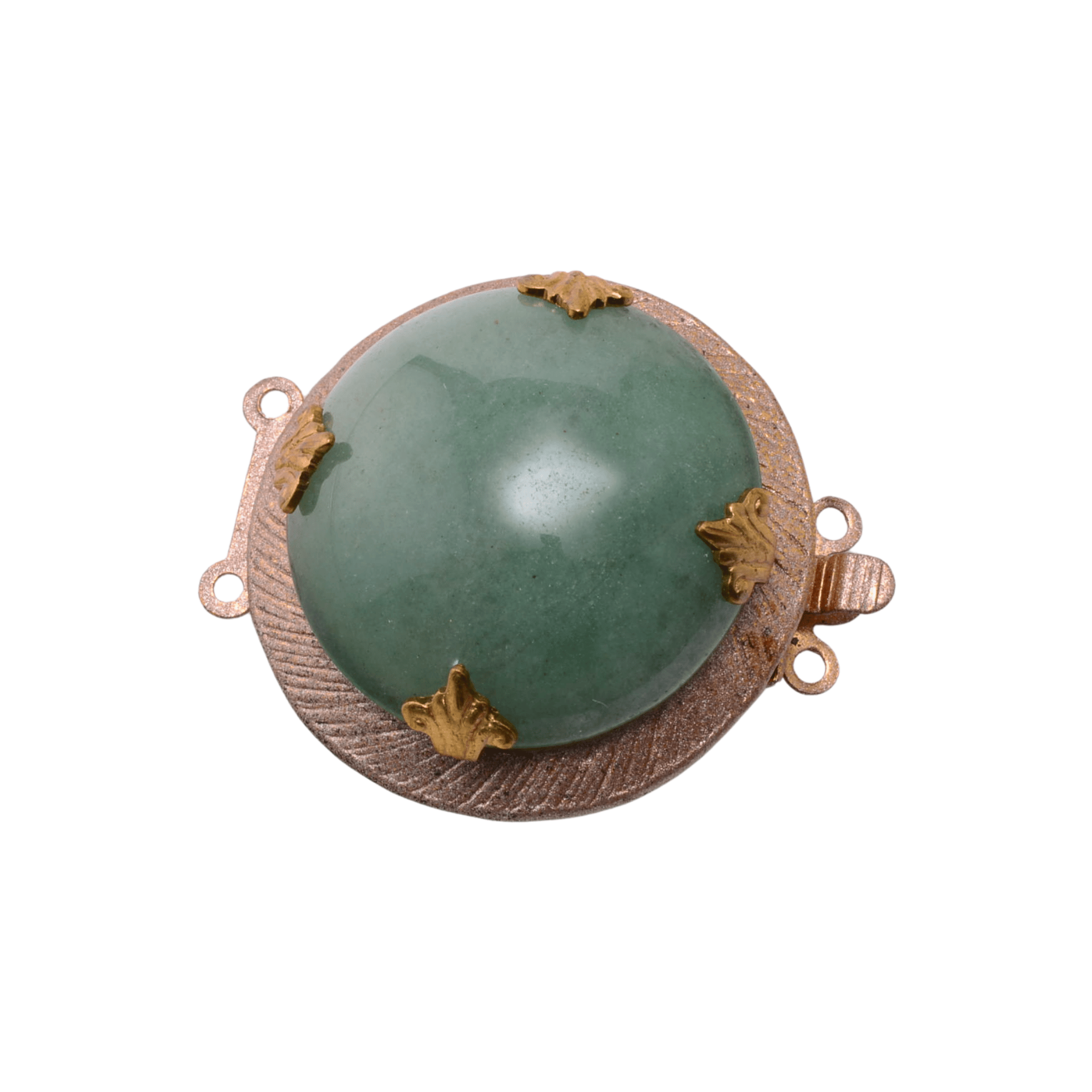 This gorgeous collection of five handmade gemstone box clasp closures was created by artisan Rosemary Long, who hand-selects polished natural stone cabochons and sets them into decorative brass box push clasp housings. Each clasp in this gemstone box clasp set transforms a simple closure into a statement jewelry component, giving designers the ability to incorporate genuine stone beauty into every element of their work.