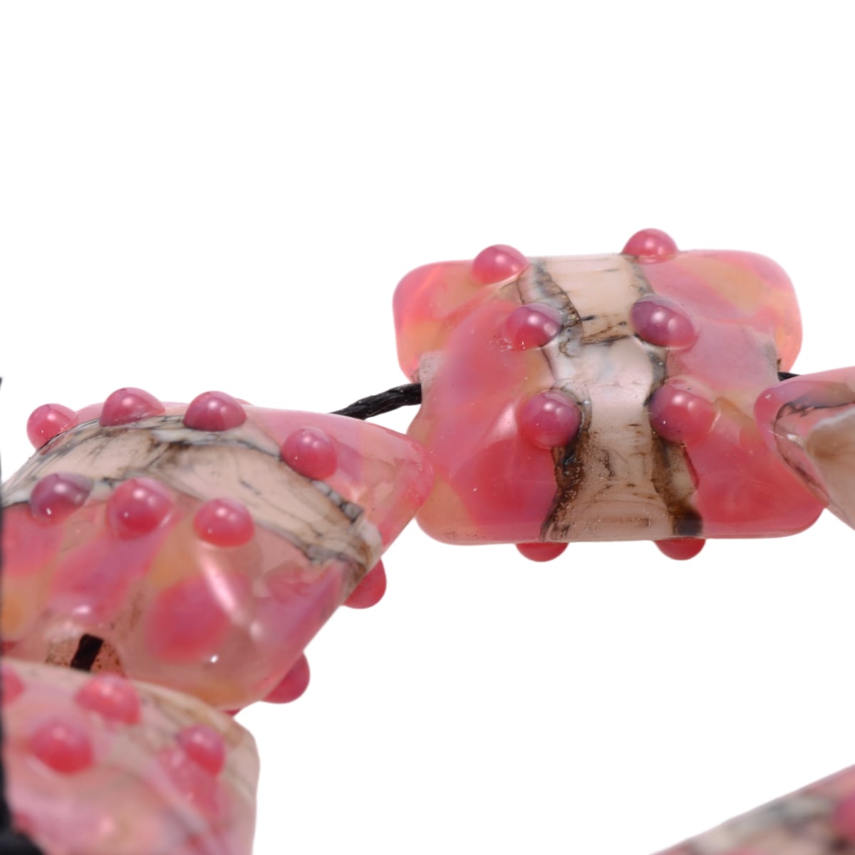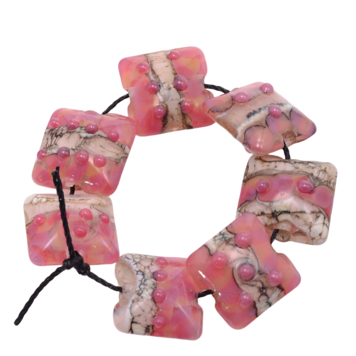 Handmade Lampwork Glass Pillow Beads 15mm - Grace Ma - Pink Coral Floral Art Glass Strand of 7