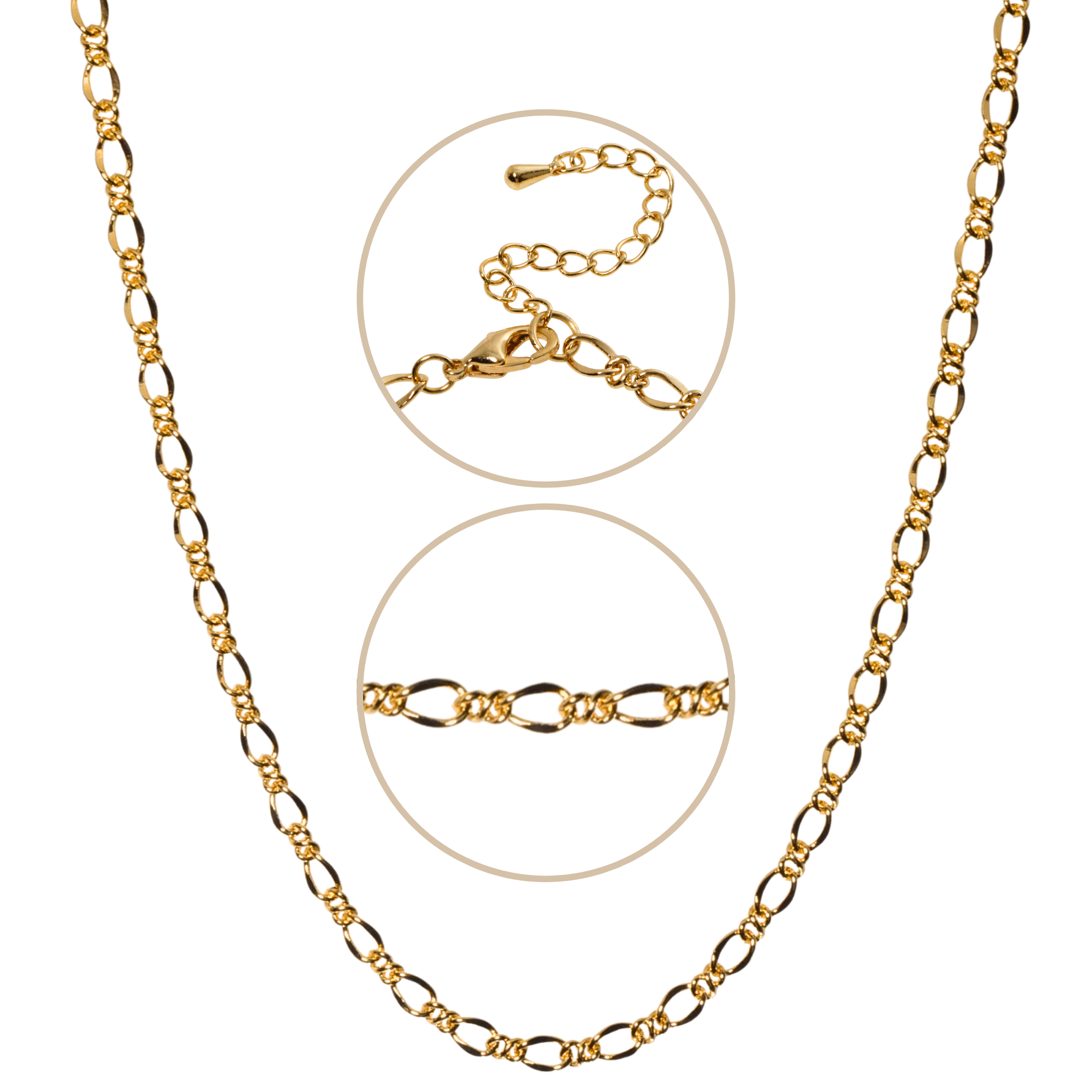 Figaro Chain – Distinctive 6.8mm x 4mm elongated oval links paired with twisted figure-eight connectors for timeless Italian-inspired design.