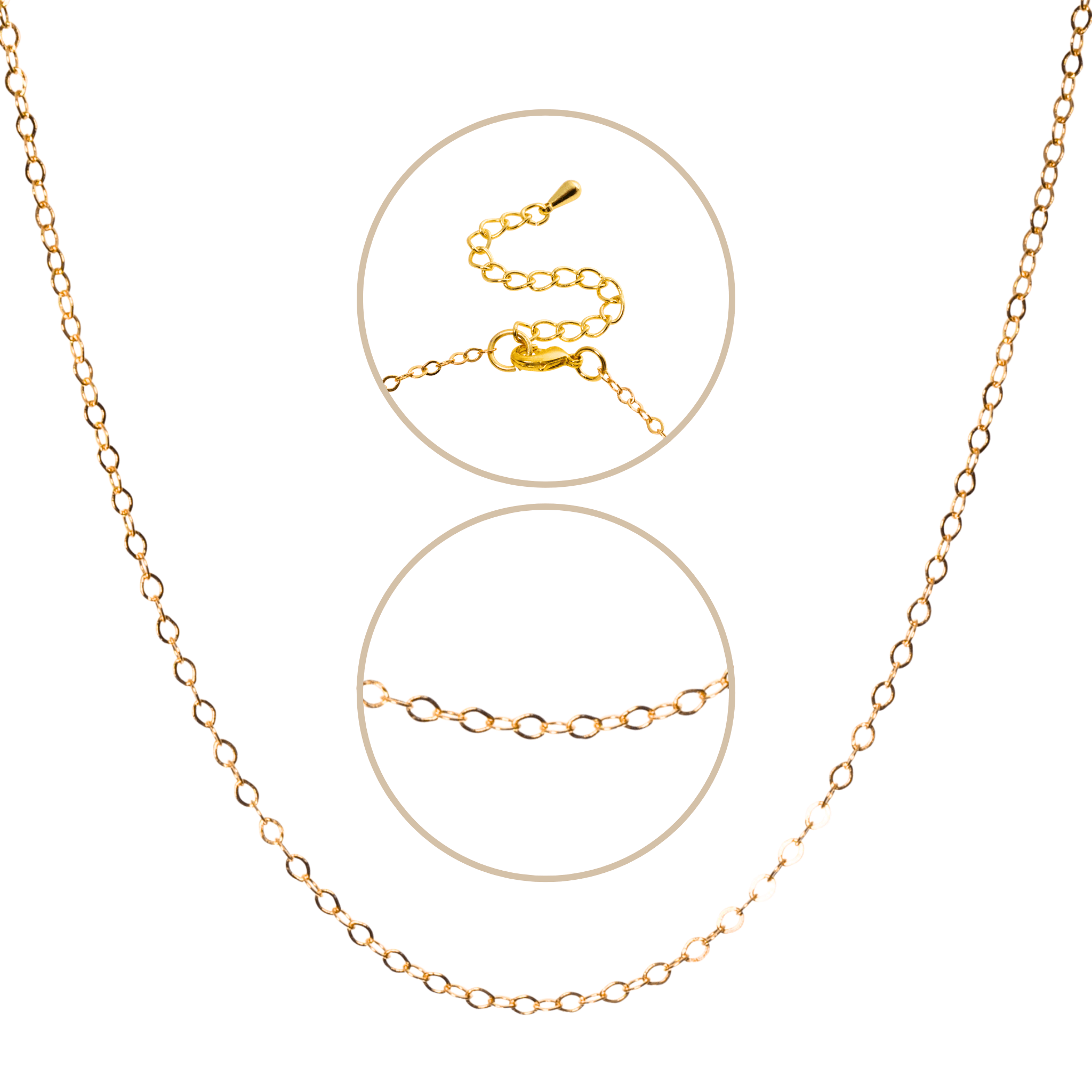 Discover our exclusive collection of 16" necklaces with 2" extension chains, expertly crafted in-house by Continental Beads. Each piece is plated in 18K gold electroplated nickel-free for a radiant, hypoallergenic finish. Designed to be worn alone or paired with charms and pendants, these made-to-order necklaces offer timeless style and quality.