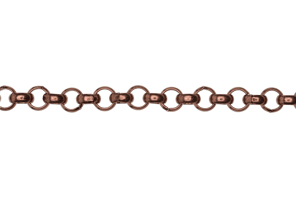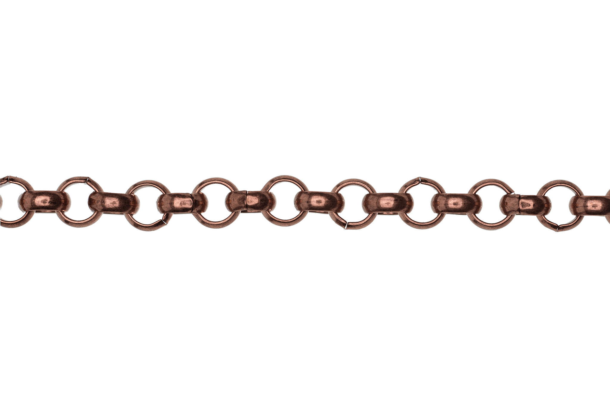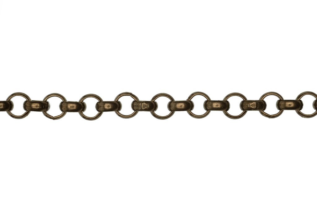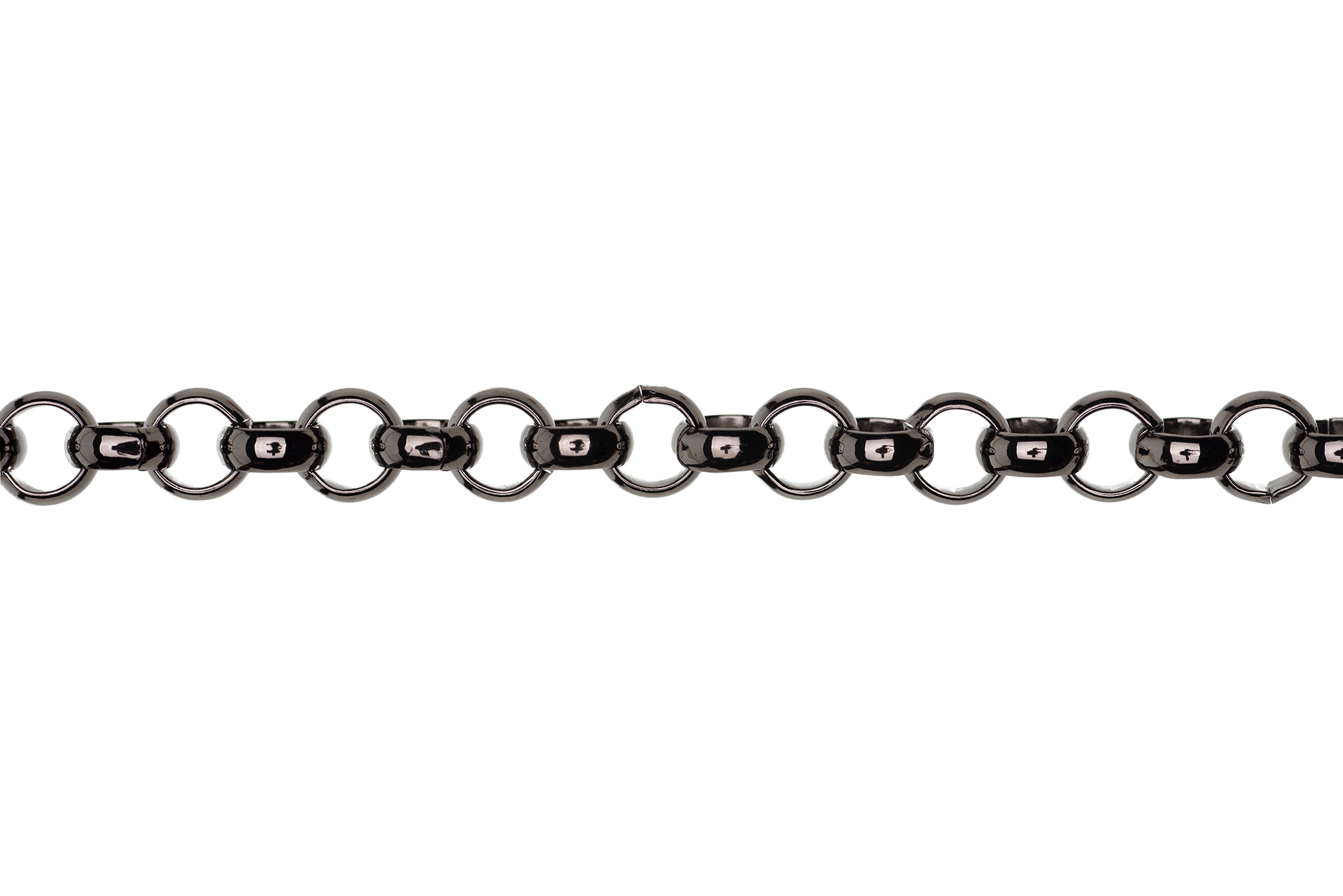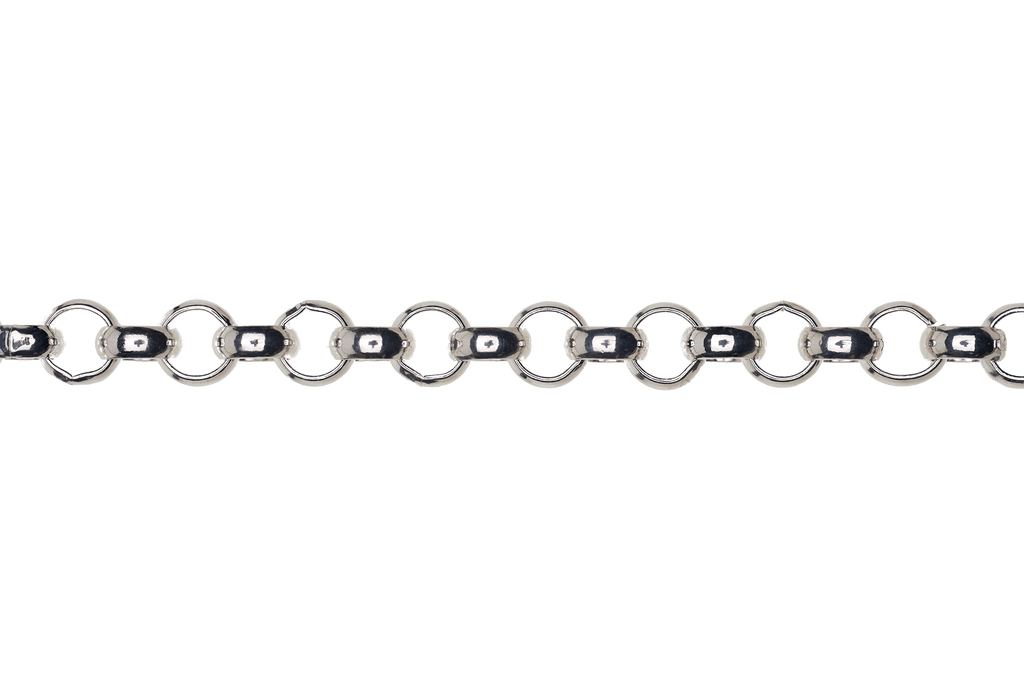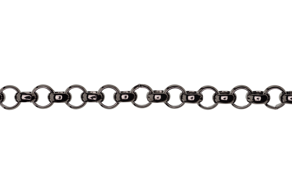 7mm Rolo Chain Sold By The Foot CH5 This sturdy 7mm Rolo (or Rollo) chain is a must-have staple for bead stores and jewelry designers. This chain has an inside diameter of 4.8mm. It's perfect for necklaces, bracelets, and whatever else you can think of. It will work wonderfully for charm bracelets; choose from hundreds of our USA made pewter Charm to complete the look. This hypoallergenic chain is made from solid brass and is electroplated nickel free. This chain is plated in a brilliant silver finish that replicates sterling silver but at an affordable price. The chain is strong enough that the links are not soldered and can be opened for easy jewelry making and little waste.