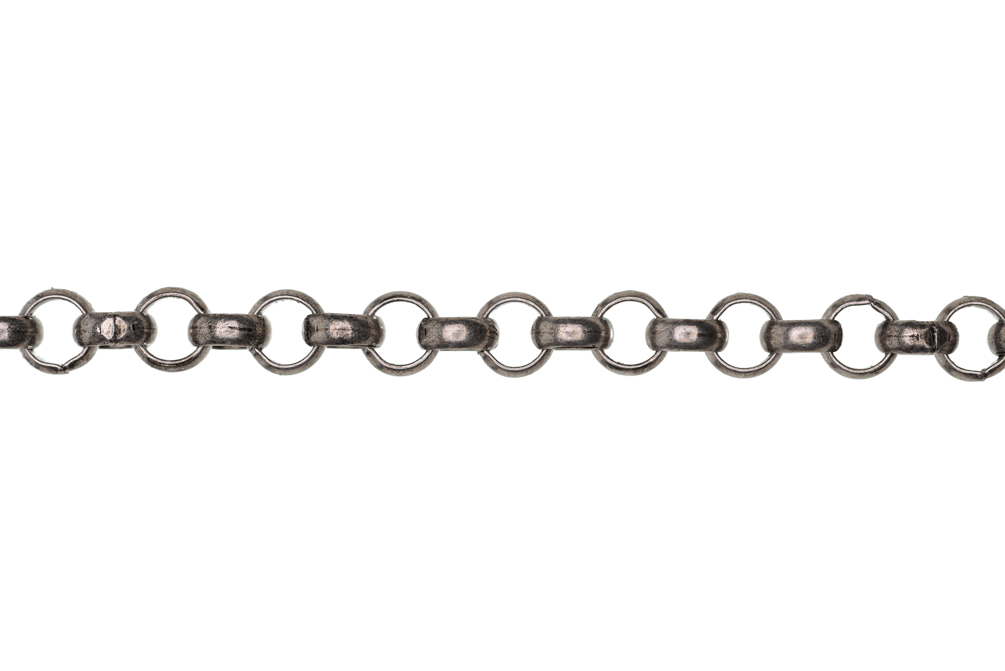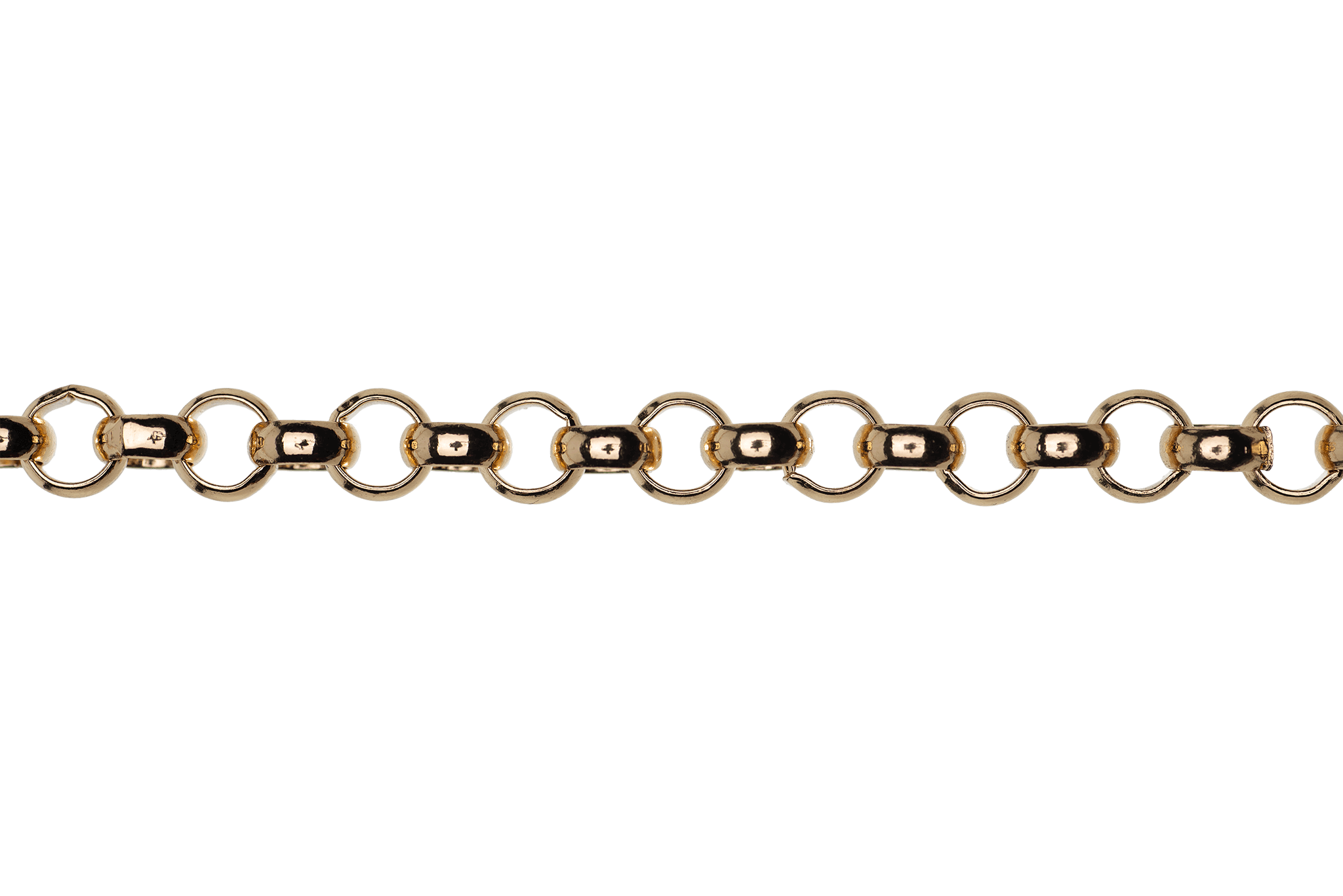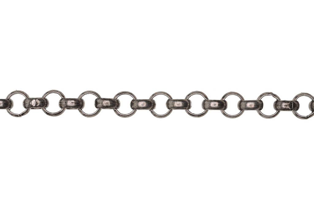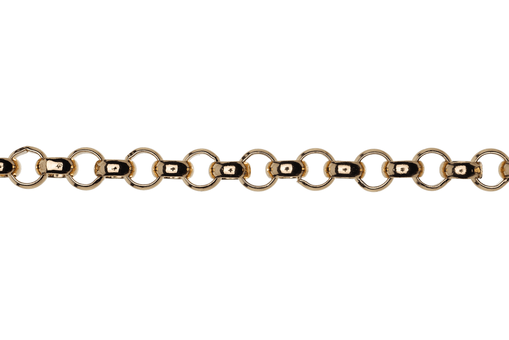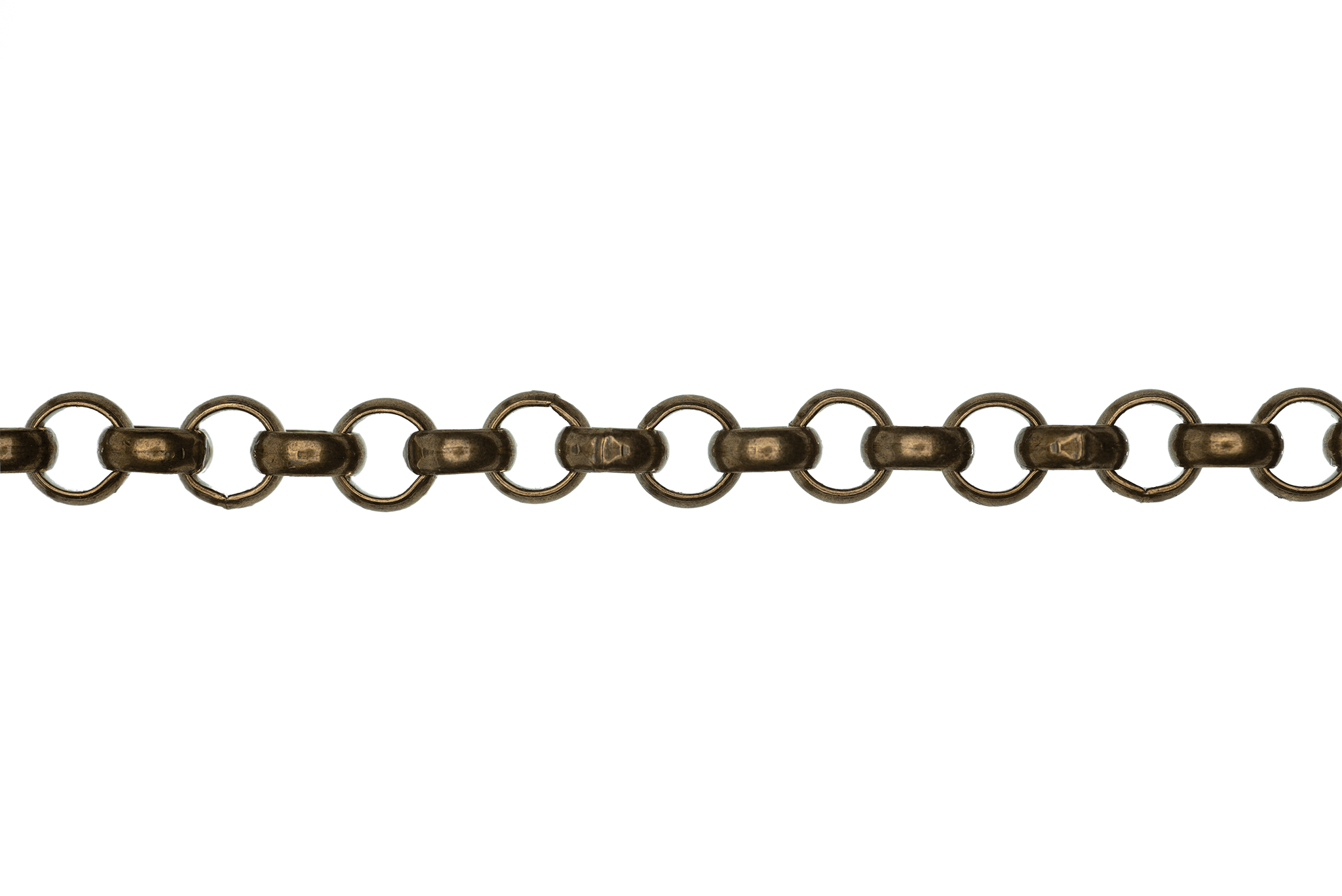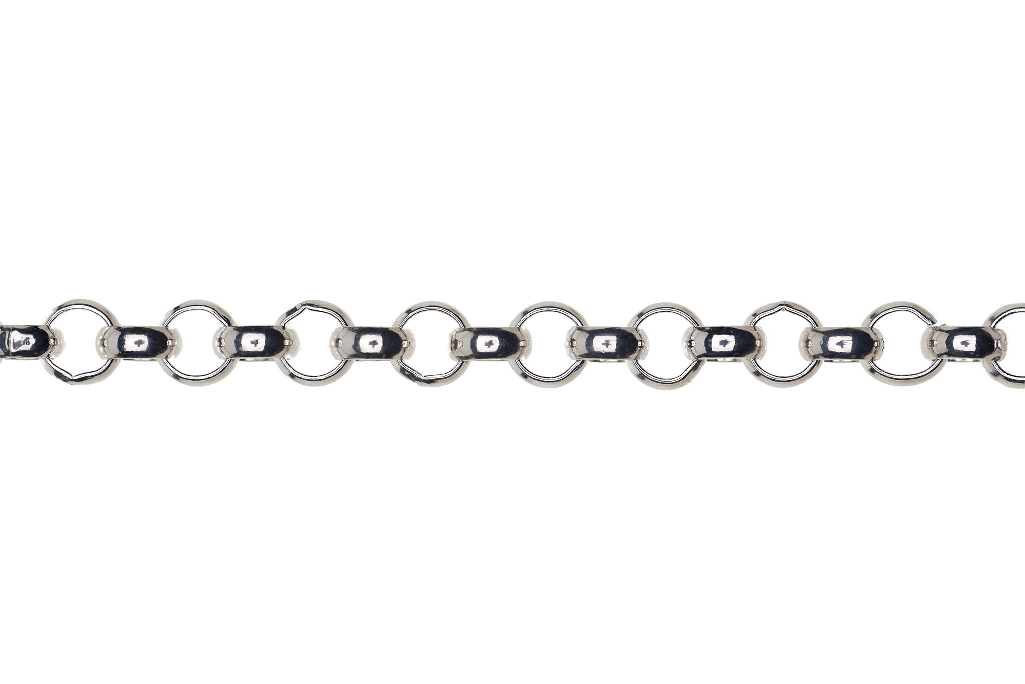 7mm Rolo Chain Sold By The Foot CH5 This sturdy 7mm Rolo (or Rollo) chain is a must-have staple for bead stores and jewelry designers. This chain has an inside diameter of 4.8mm. It's perfect for necklaces, bracelets, and whatever else you can think of. It will work wonderfully for charm bracelets; choose from hundreds of our USA made pewter Charm to complete the look. This hypoallergenic chain is made from solid brass and is electroplated nickel free. This chain is plated in a brilliant silver finish that replicates sterling silver but at an affordable price. The chain is strong enough that the links are not soldered and can be opened for easy jewelry making and little waste.