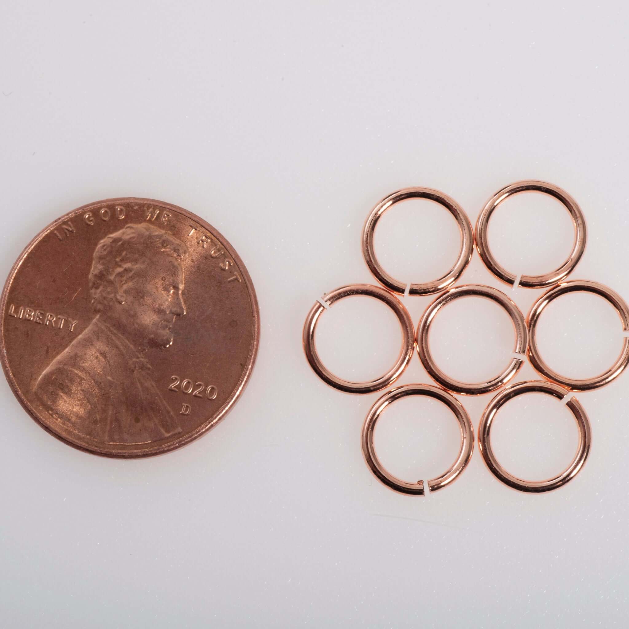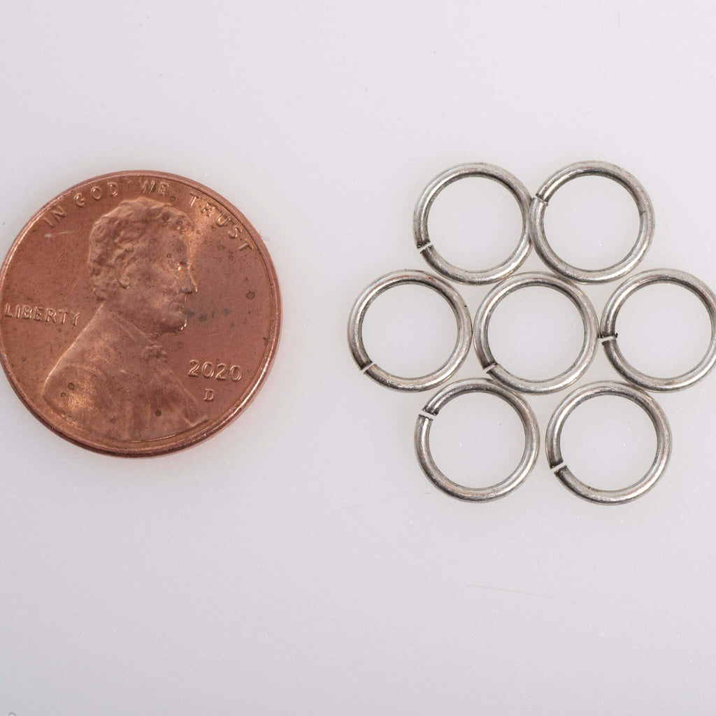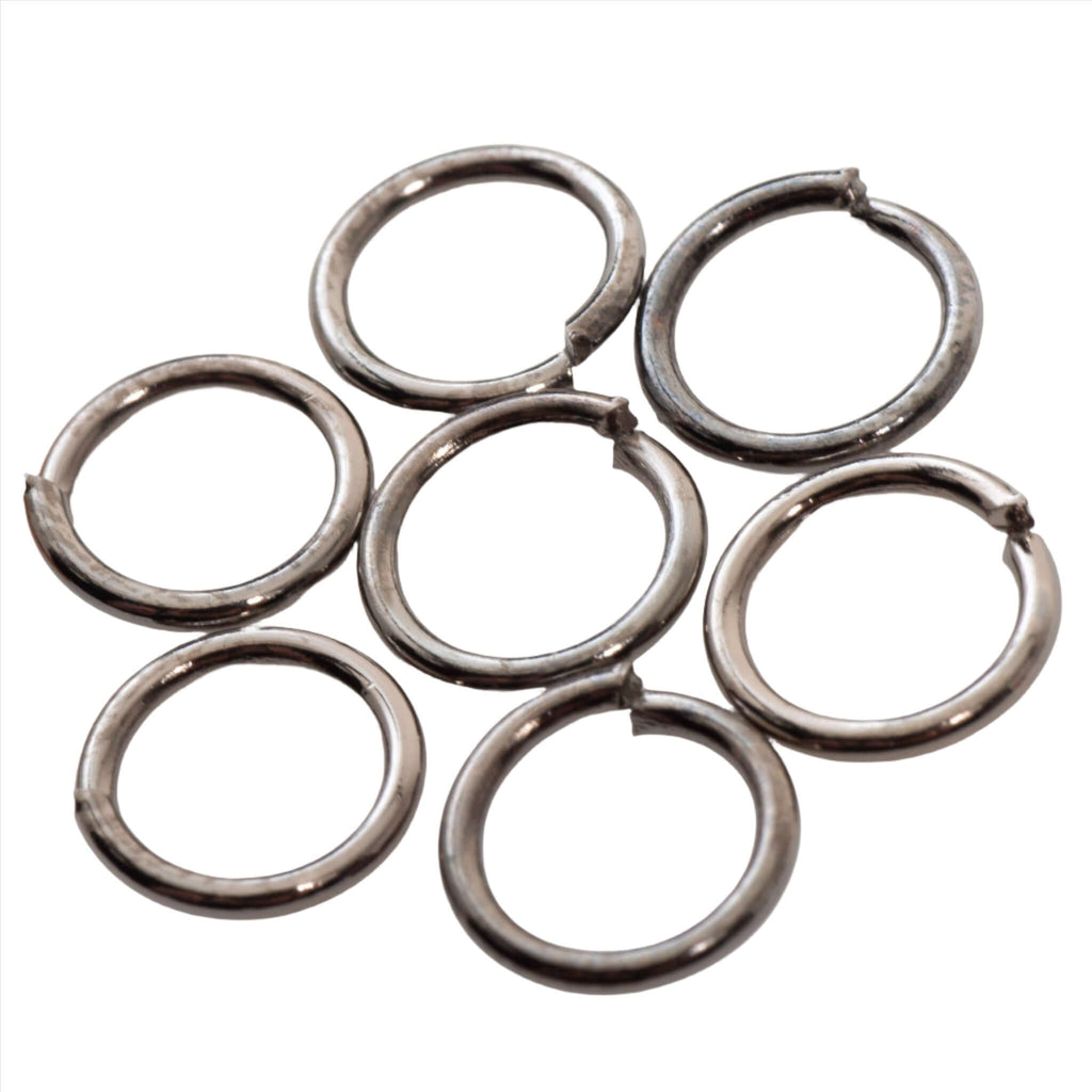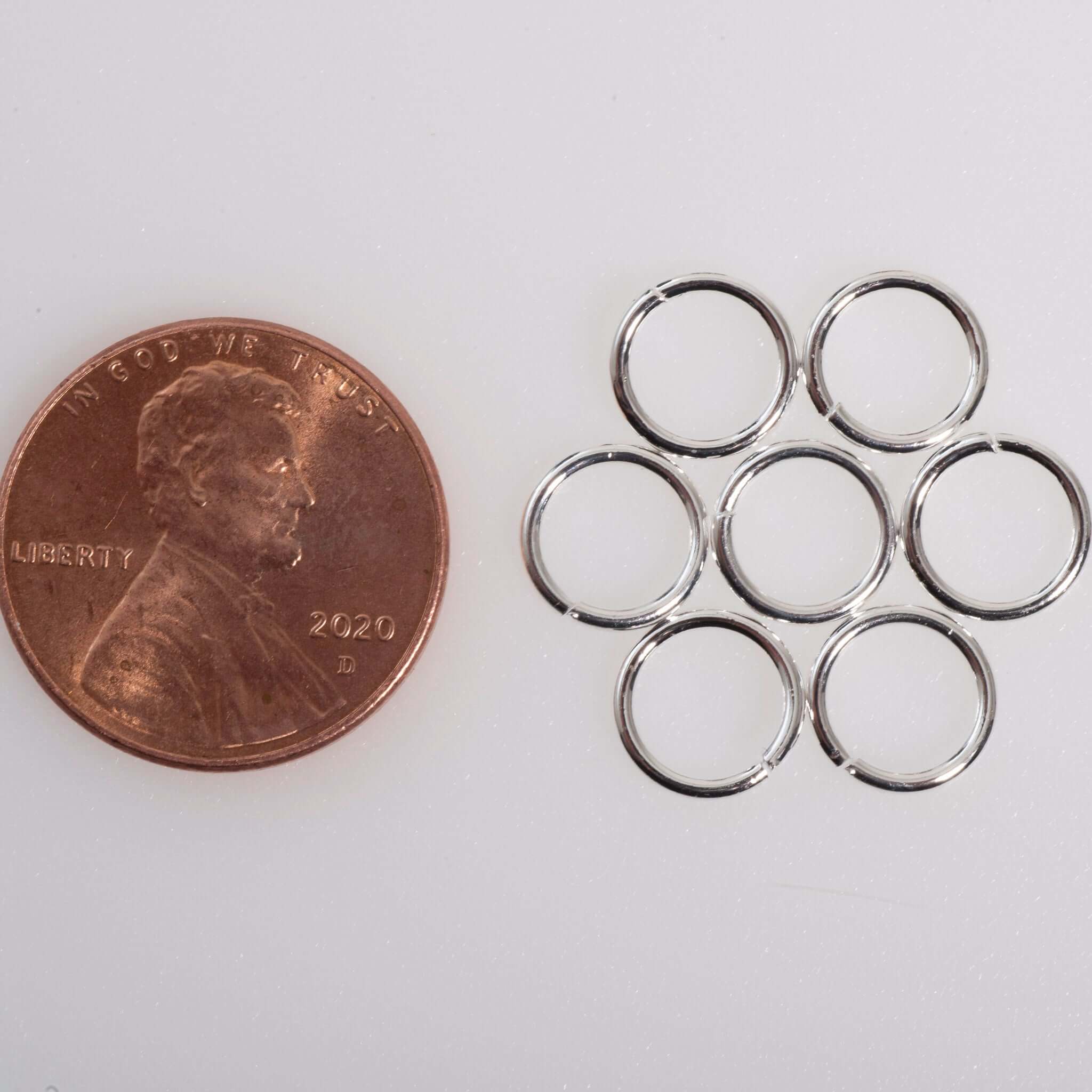 These open jump rings measure 8mm and are made from 18 gauge steel wire.  They are sold in 25 gram packages. Approximately 170 pieces per package. These jump rings contain +/- 8% nickel in the plating to keep it from being damaged when working with tools to manipulate the jump rings. These jump rings are available in many plated finishes and are 100% lead-safe.