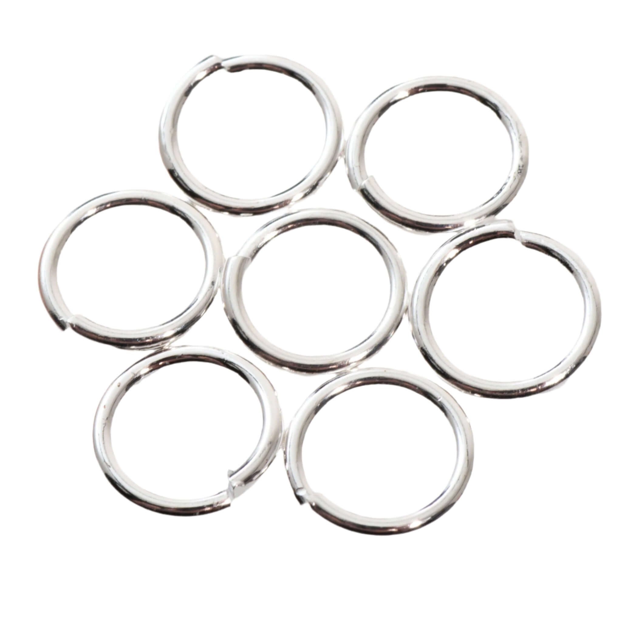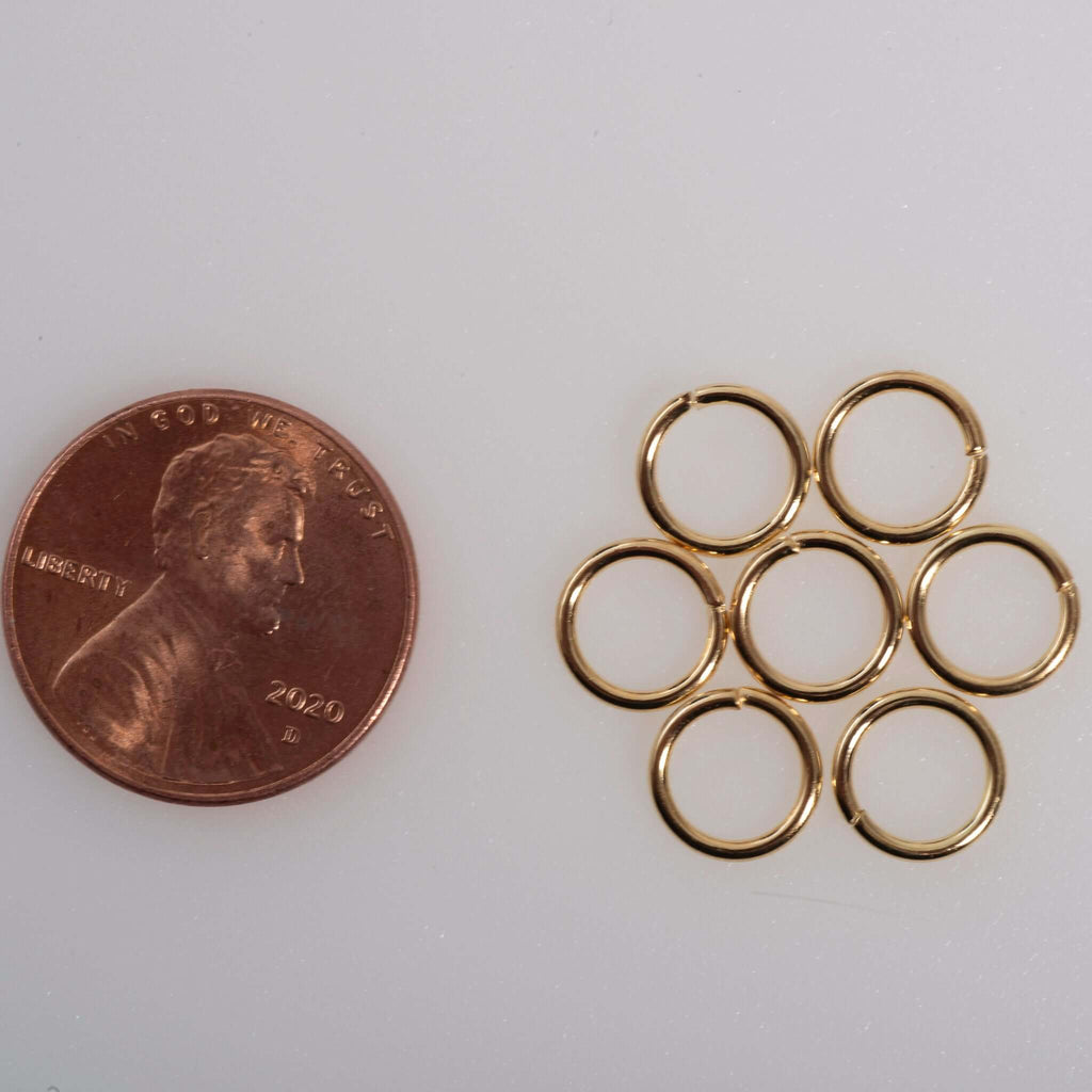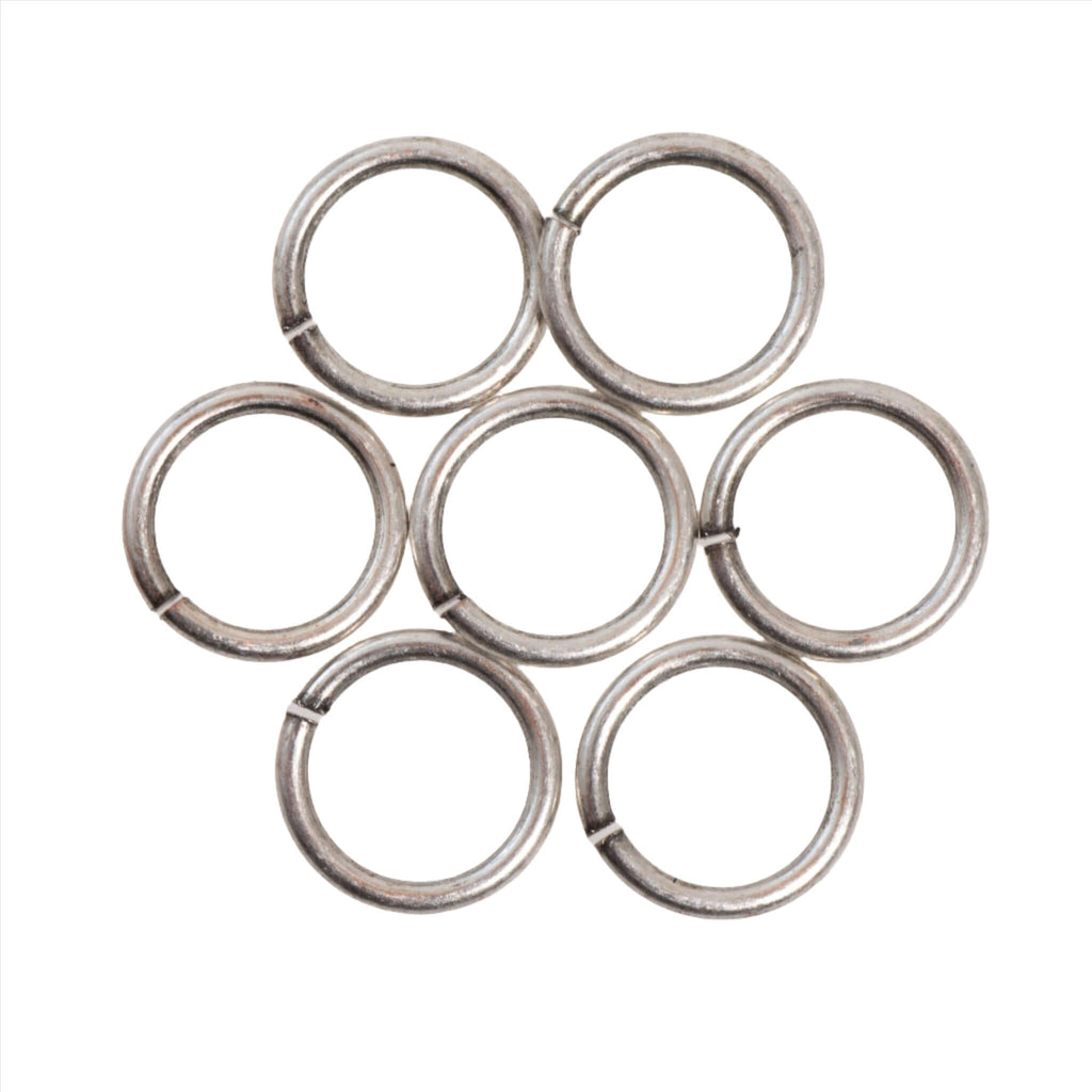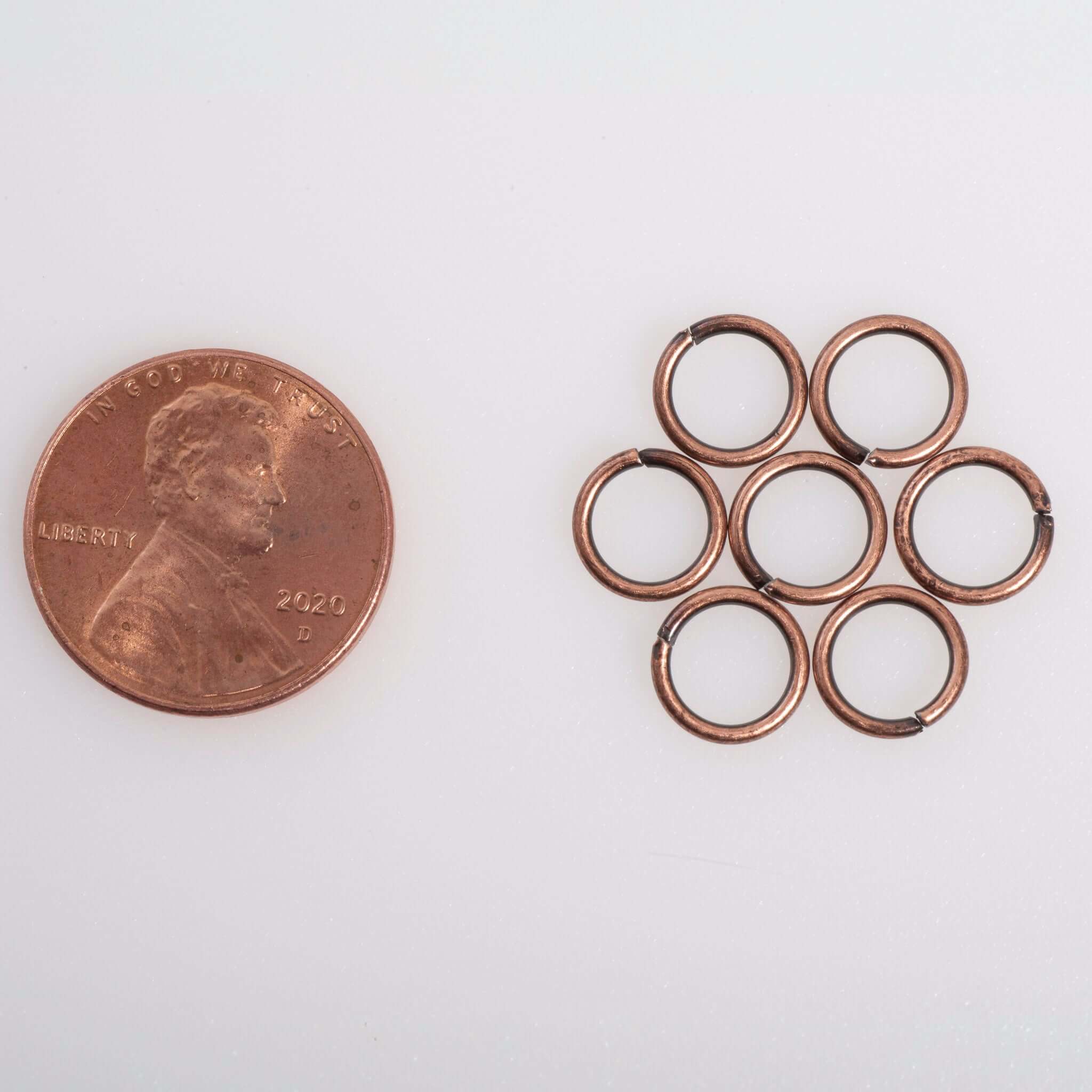 These open jump rings measure 8mm and are made from 18 gauge steel wire.  They are sold in 25 gram packages. Approximately 170 pieces per package. These jump rings contain +/- 8% nickel in the plating to keep it from being damaged when working with tools to manipulate the jump rings. These jump rings are available in many plated finishes and are 100% lead-safe.