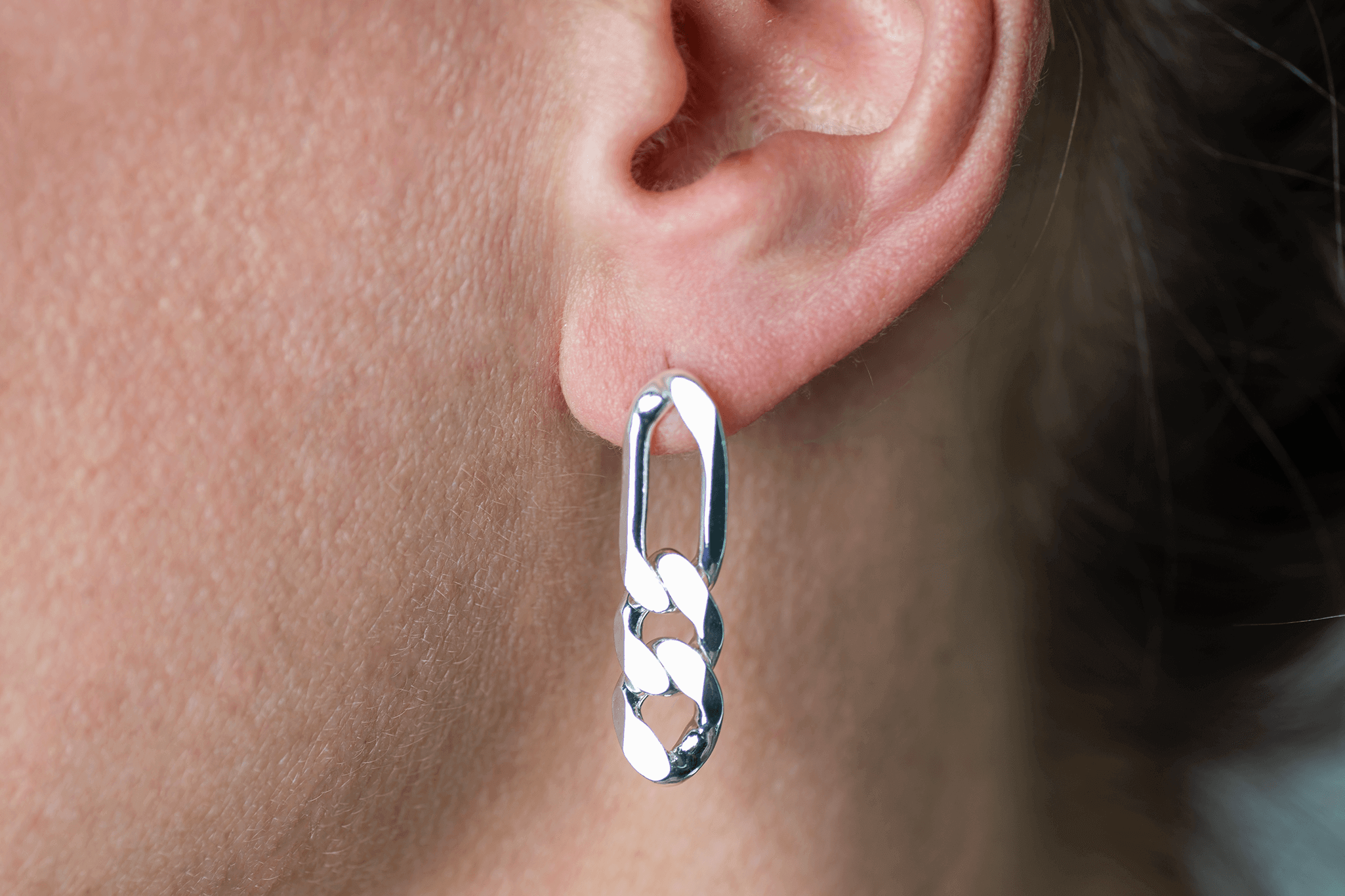 Figaro Chain Earring with Back - Measures 8mm - Available in Silver and Gold - Sold Individually - KE-25