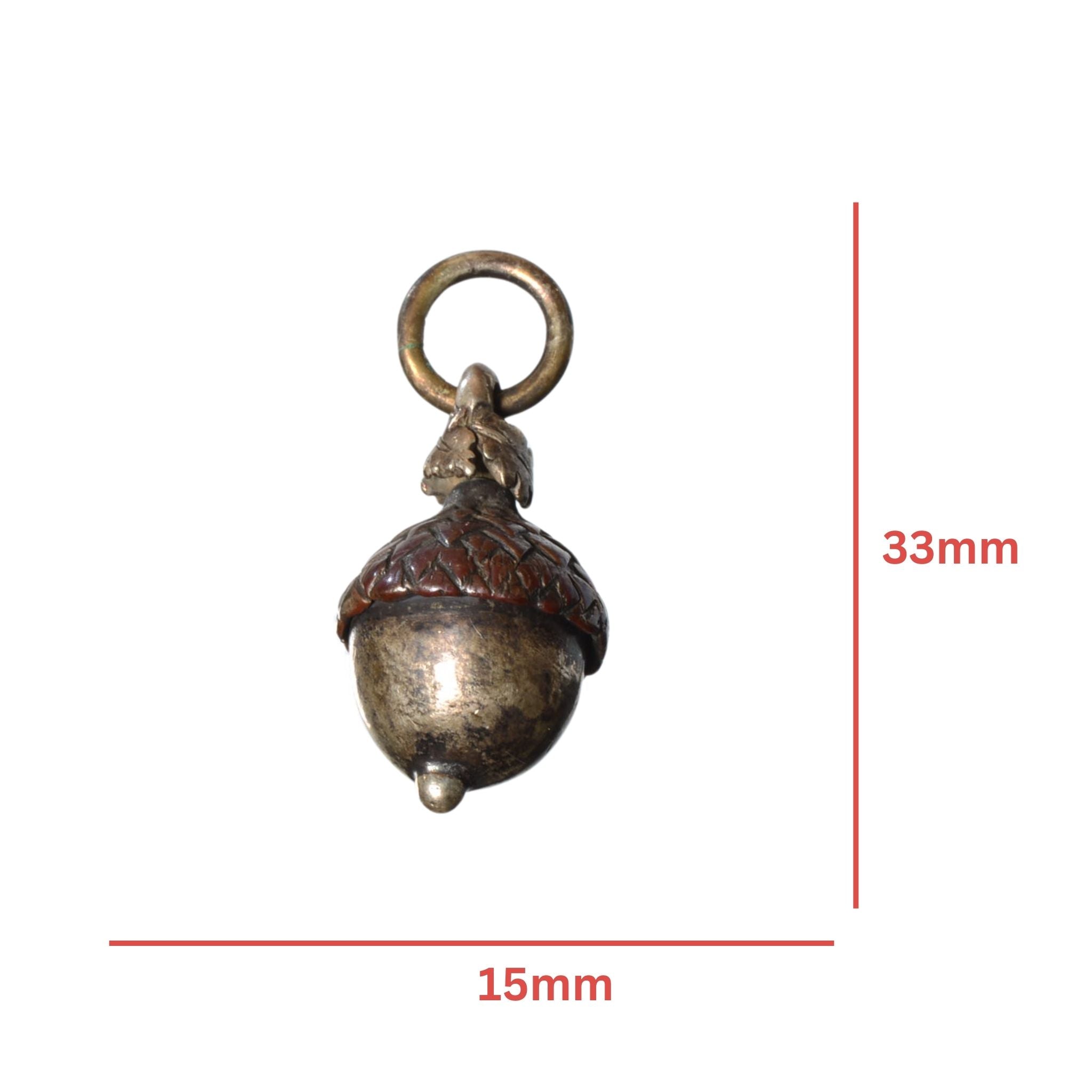 The acorn features a warm bronze cap with organic texture, contrasted by a smooth sterling silver body and finished with a sturdy hanging loop. Subtle patina and hand-worked details give each piece depth, character, and an unmistakable artisan feel.