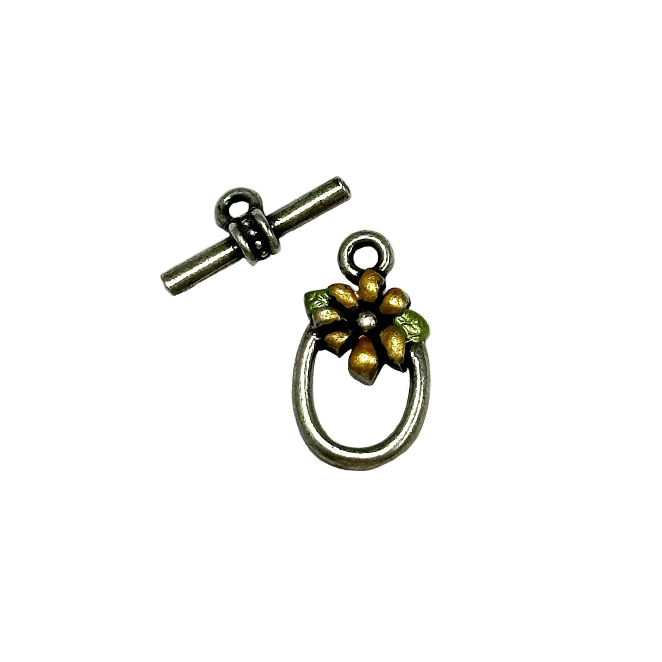 Toggle Clasp with Flower Design Made in USA from Pewter - Per Piece