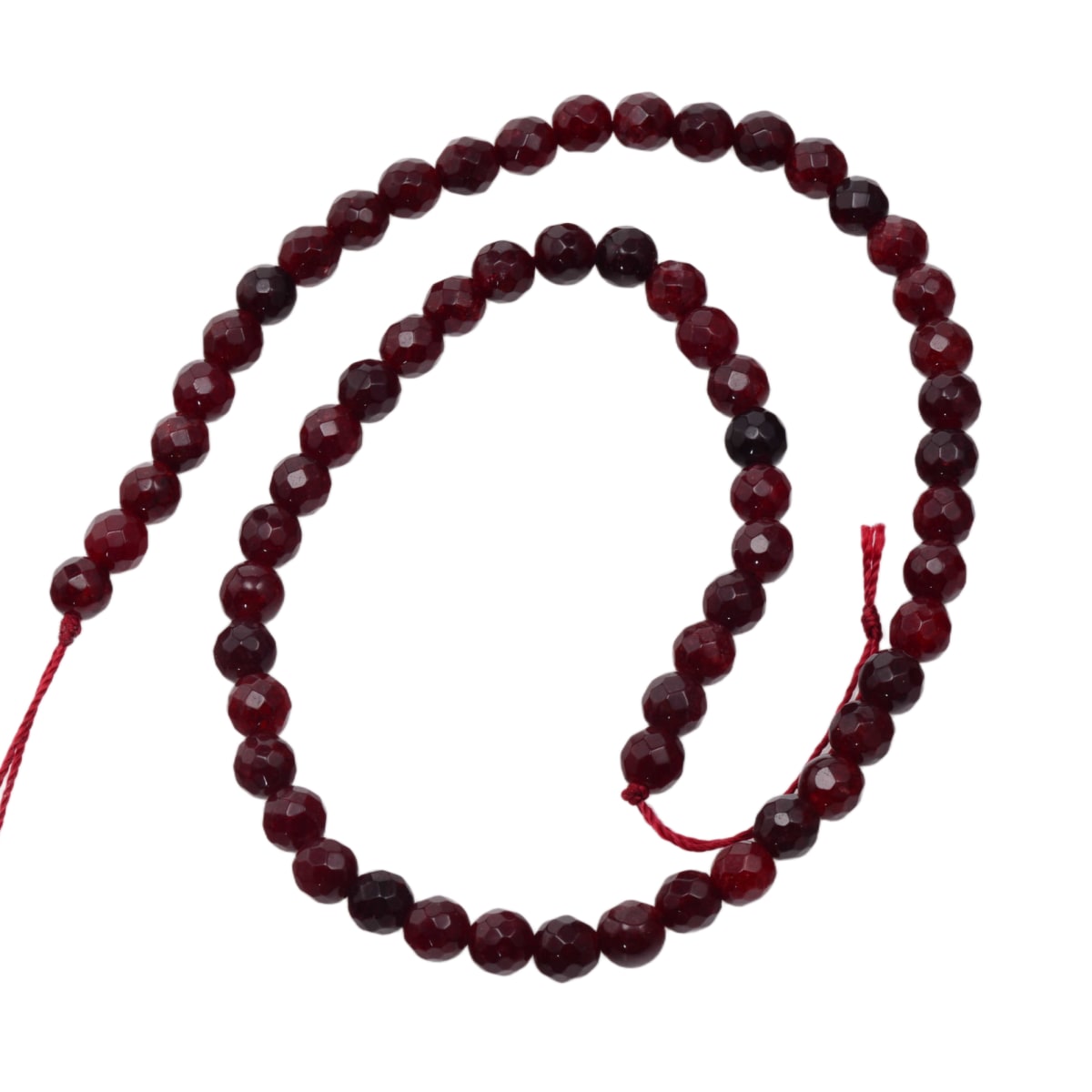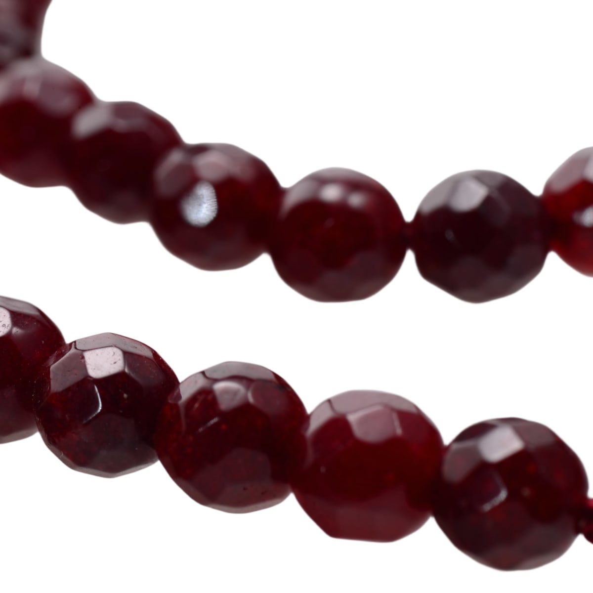 Red Jade Faceted Round Beads 6mm - Premium Natural Stone Strand