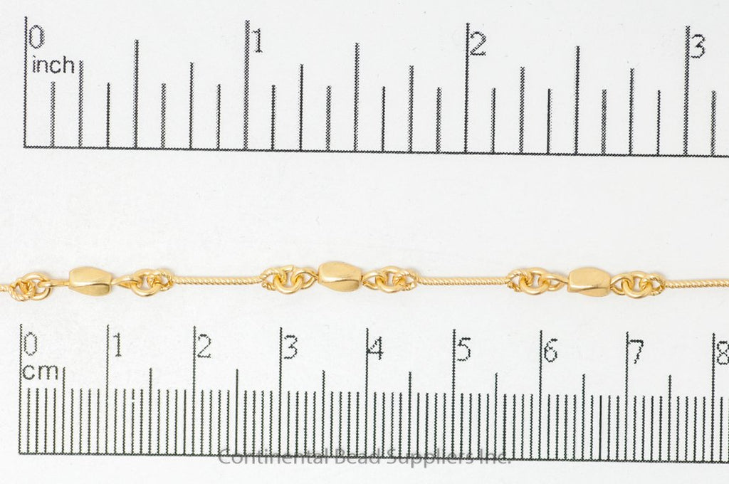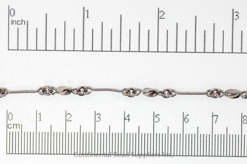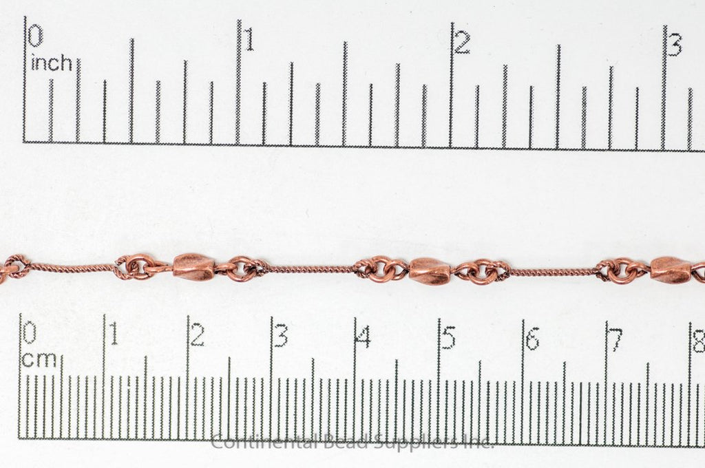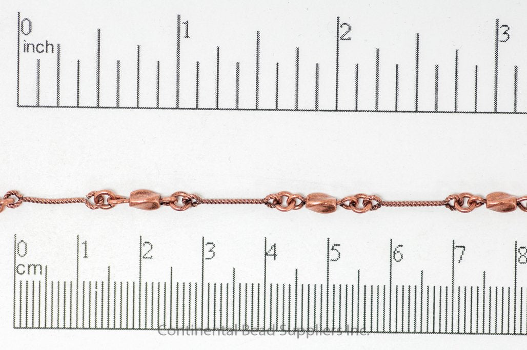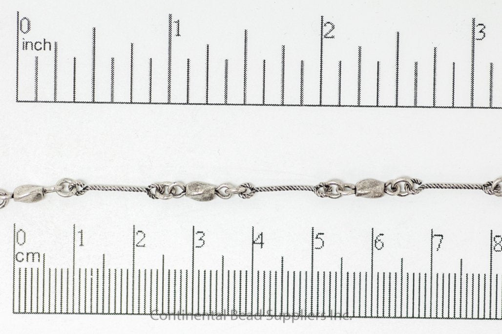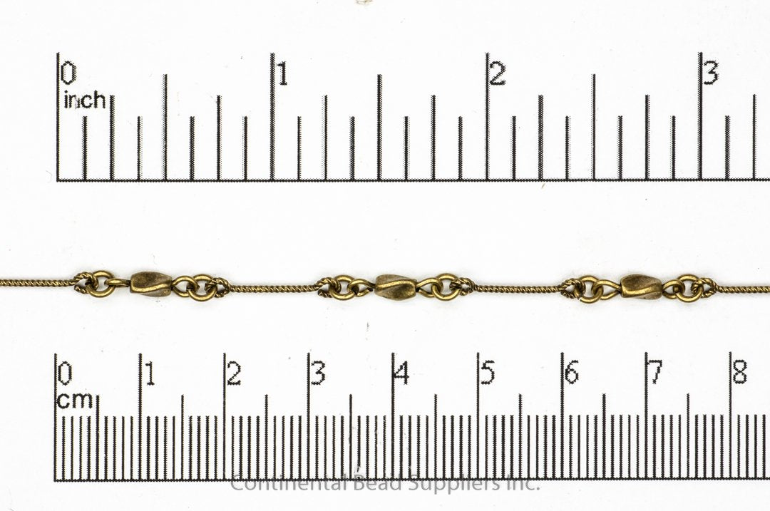 16mm Bar, 5mm Bead Twisted Rope Chain - Made of Brass - Sold by the Foot - Ch-905