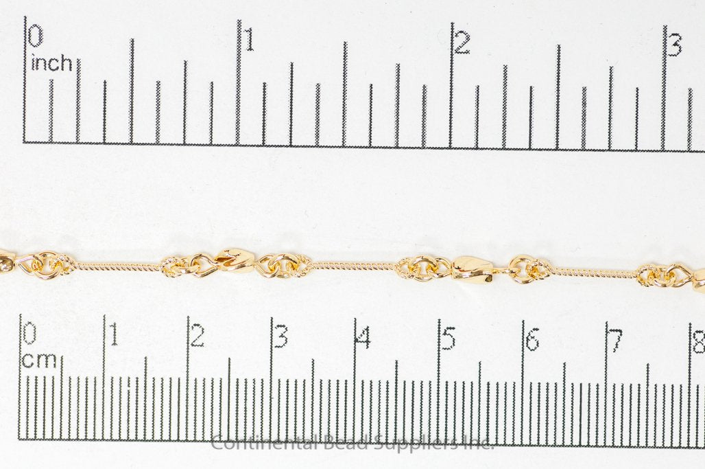 Craft distinctive jewelry with our 16mm Bar, 5mm Bead Twisted Rope Chain, a unique brass chain featuring 16mm bars with twisted rope texture and 5mm warped box connector beads. Perfect for bold necklaces, bracelets, or standout designs, this electro-plated chain is available in multiple finishes for versatile styling. Hypoallergenic, Nickel-Free, and 100% Lead Safe, it ensures safety and comfort. Sold by the Foot by Continental Bead Suppliers, it’s a striking choice for hobbyists and designers across the USA and Canada.