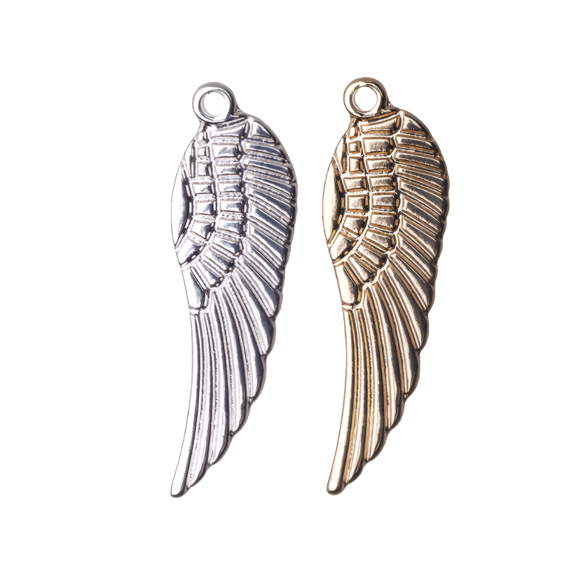 The 30mm x 9mm Angel Bird Wing Charm is a beautifully crafted pendant made from plated zinc. Featuring an angel bird wing design, this charm adds an ethereal touch to your jewelry projects. It comes with a 3mm loop and a 1.5mm hole, making it versatile for necklaces, bracelets, earrings, and more. Available in silver and gold finishes, this charm is nickel-free, hypoallergenic, and 100% lead-safe, ensuring safety and style in your designs.