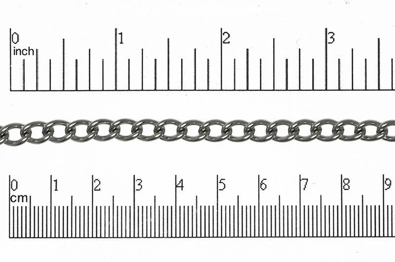 5.5mm Curb Chain Sold by the foot. CH134 This curb chain has 5.5mm x 3.3mm flat oval links with a slight twist. The twist in the curb chain links causes it to lie flat when worn in jewelry designs. Use this chain for your necklace, bracelet anklet, and earring designs. It is made from marine grade 316 stainless steel which is strong and impervious to rust, corrosion, and tarnishing. Dangle your favorite Charm, Bead, or baubles from the open links. Stainless Steel chain is often used in designs with religious or medical symbols which the wearer prefers to have on their body at all times. The stainless steel silver color with complement any color palette.