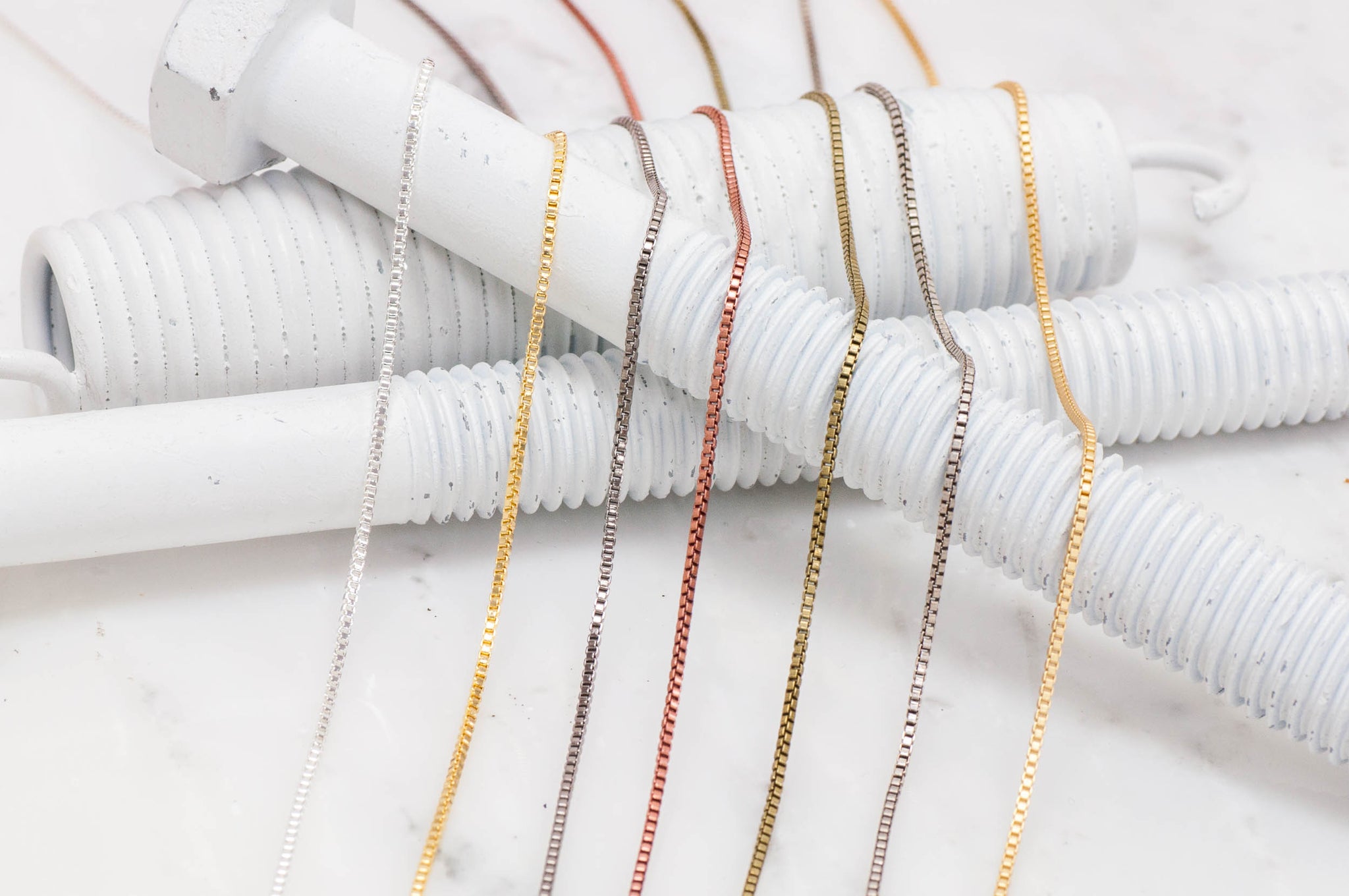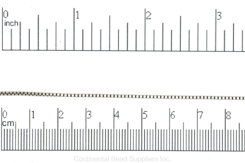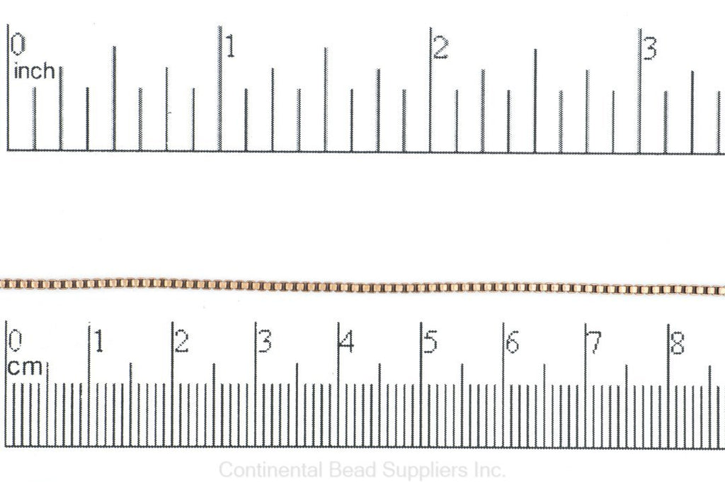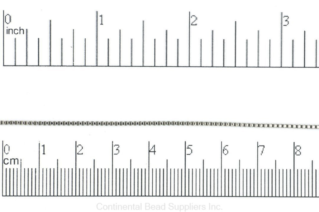 1.2mm Box Chain Sold by the foot This 1.2mm Box Chain is perfect for making bracelets and lariat style necklaces using our String on Clasps(SOC/2). We love how it flows so elegantly when worn. We like to use our CCAP2 glue in cord end caps for a polished look or you can use our 2mm Crimp Ends w/loop (CRL2) to simply add a clasp. This chain looks and feels great, your options are endless.