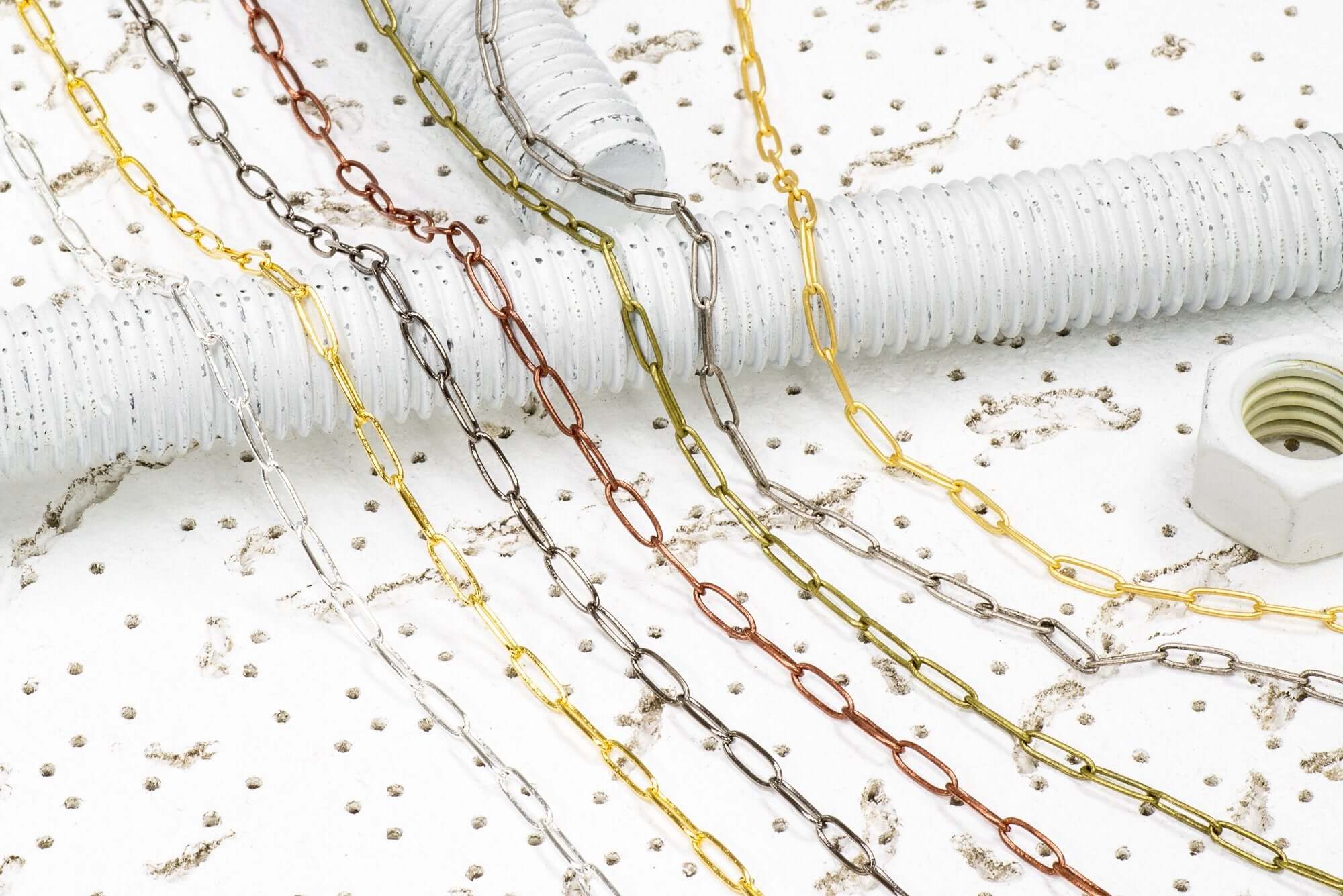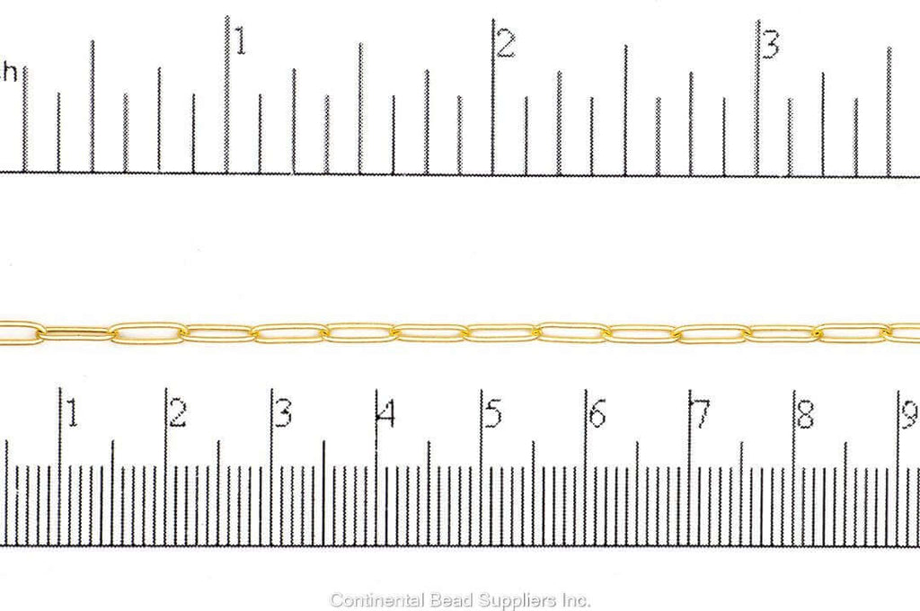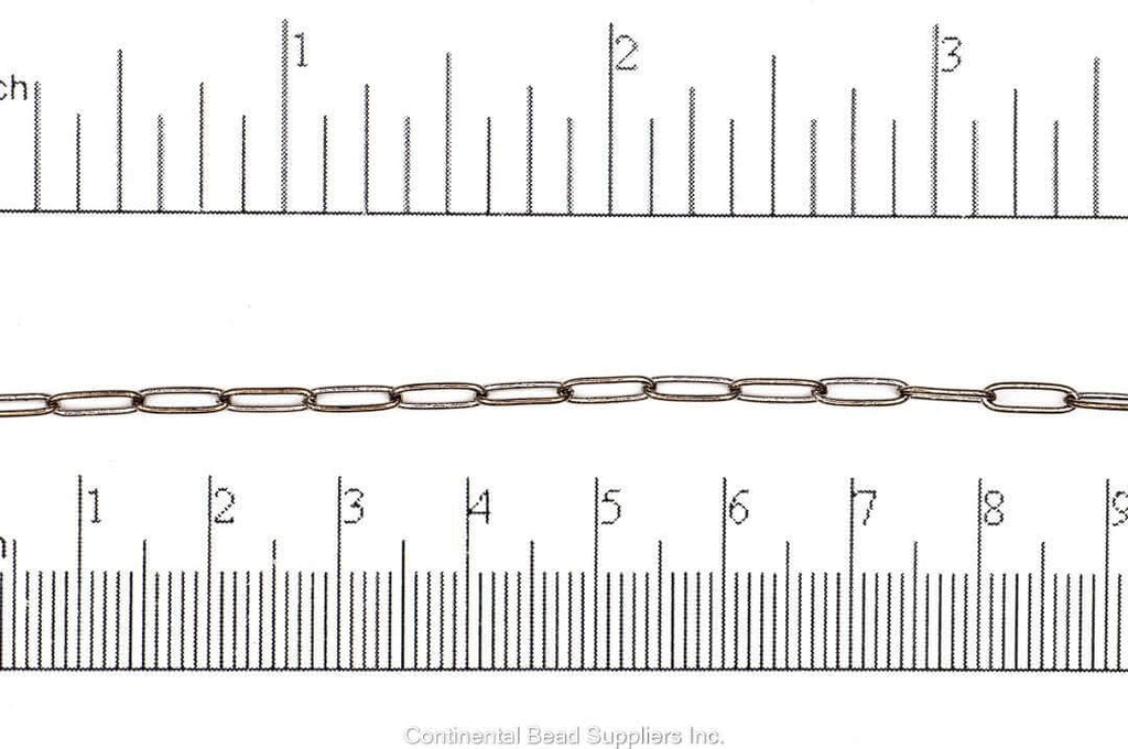 Rectangular 7.9mm x 2.3mm Paperclip Chain. Sold by the foot. This rectangular cable chain is made from a hypoallergenic brass core and electroplated 100% nickel-free. Each link measures 7.9 x 2.3mm and is made with 22 gauge wire. CH160 has relatively large openings that will fit perfectly with our 21 gauge Jump Ring. Available in a variety of finishes that meet all lead-safe requirements. We love using this chain for simple necklaces and we recommend using our C902 12 x 7mm lobster claw.