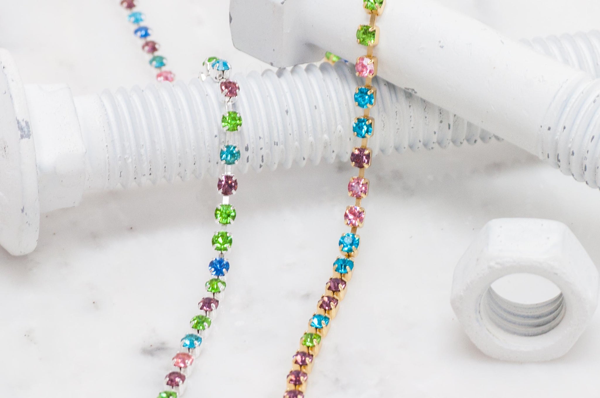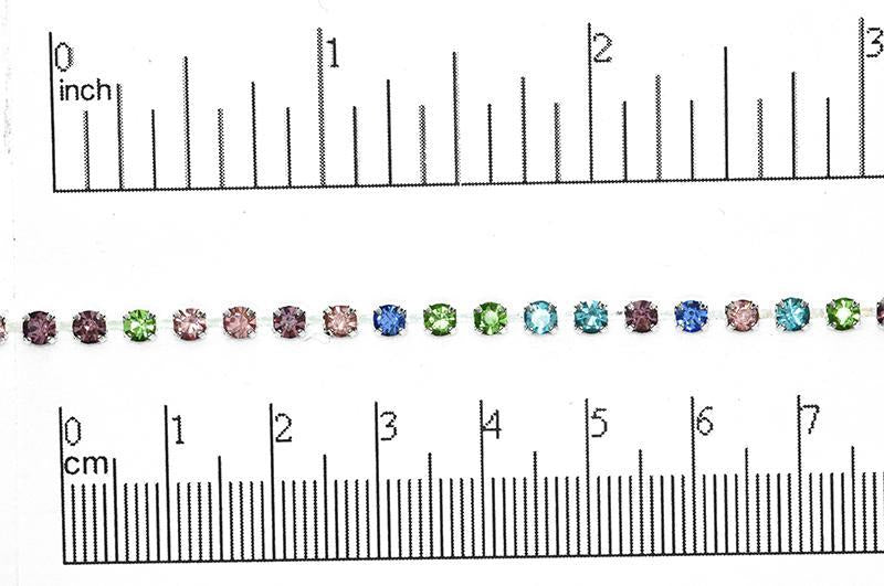 3mm Rhinestone Cup Chain - Made of Brass with Multicolored Rhinestones - Sold by the Foot - Ch-270