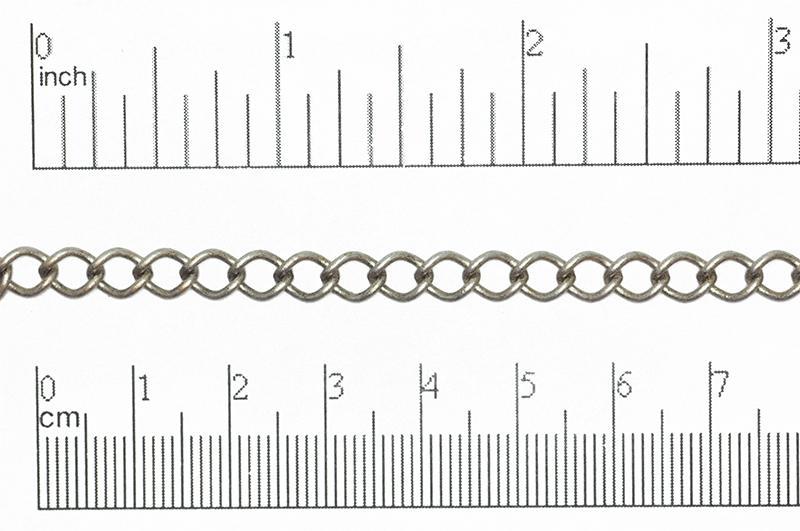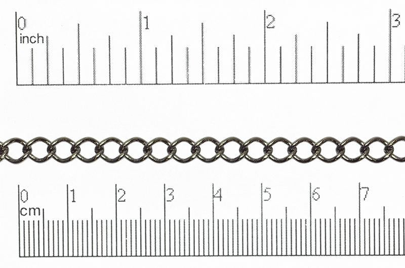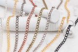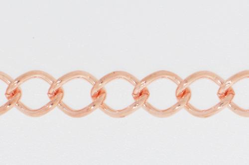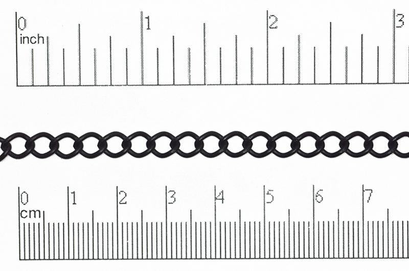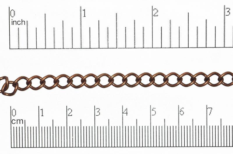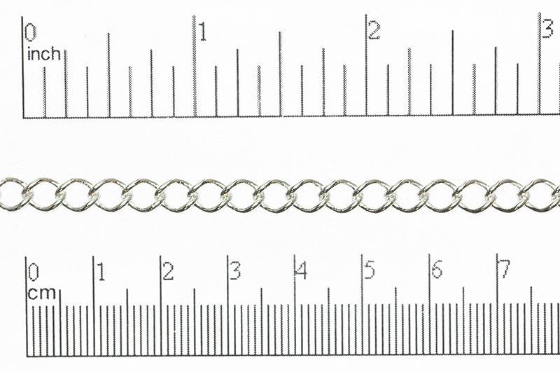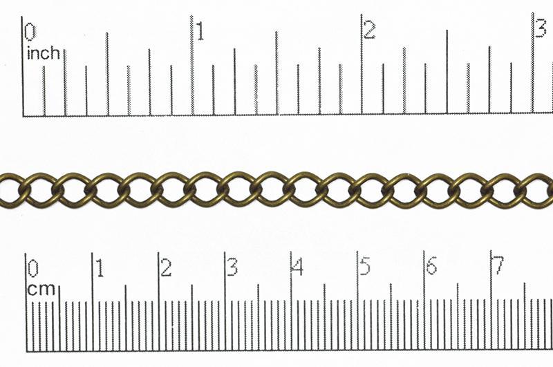 This classic curb chain measures 8mm wide. The inside diameter of each link is 5mm x 3.3mm. This chain is available in many finishes and the chain is made from a solid hypoallergenic brass core.