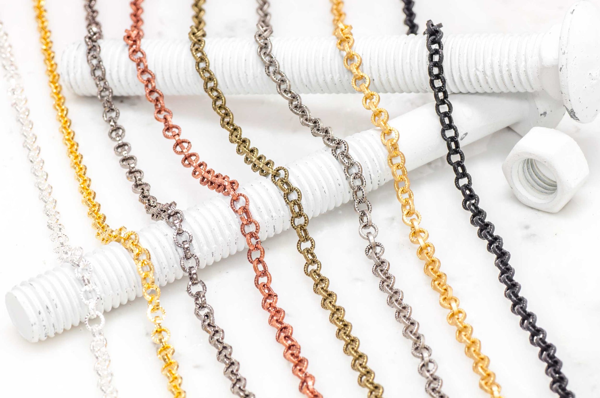 The intricate texture of this circular cable chain sets it apart, making it a standout element in necklaces, bracelets, anklets, and more. Let your creativity shine as you incorporate this chain into your unique designs.
