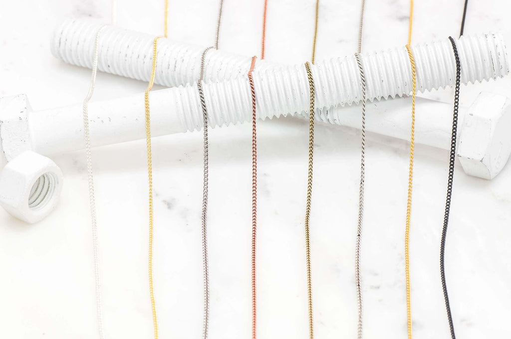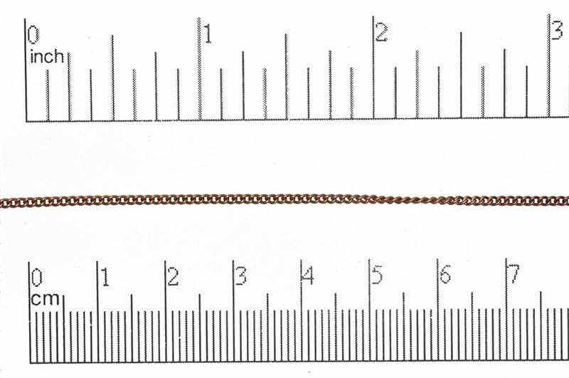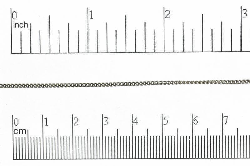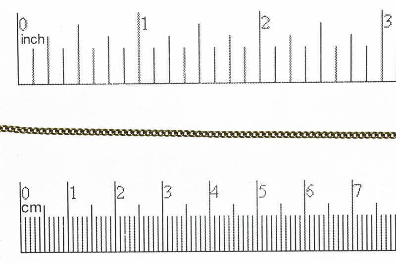 1.5mm Fine Curb Chain. Sold By The Foot. CH841 beautiful, dainty fine curb chain. The chain is made from solid, naturally, hypo-allergenic brass and is electro-plated with Nickel Free Silver. The chain is made up of 1.5mm curb links. Use this chain for necklaces, bracelets, anklets or cut into shorter lengths and incorporate it into earring design. Use as a single strand or in multiple lengths to create a layered design. This chain features soldered closed links. The antique Brass electro-plated finish will complement any color. We recommend using our 3mm 22 gauge Jump Ring to finish this chain. You will need to round out the last link of the chain to fit any sort of jump ring through this chain. If you don't want to do that we recommend using CRL1 the fold-over cord end to finish this chain.