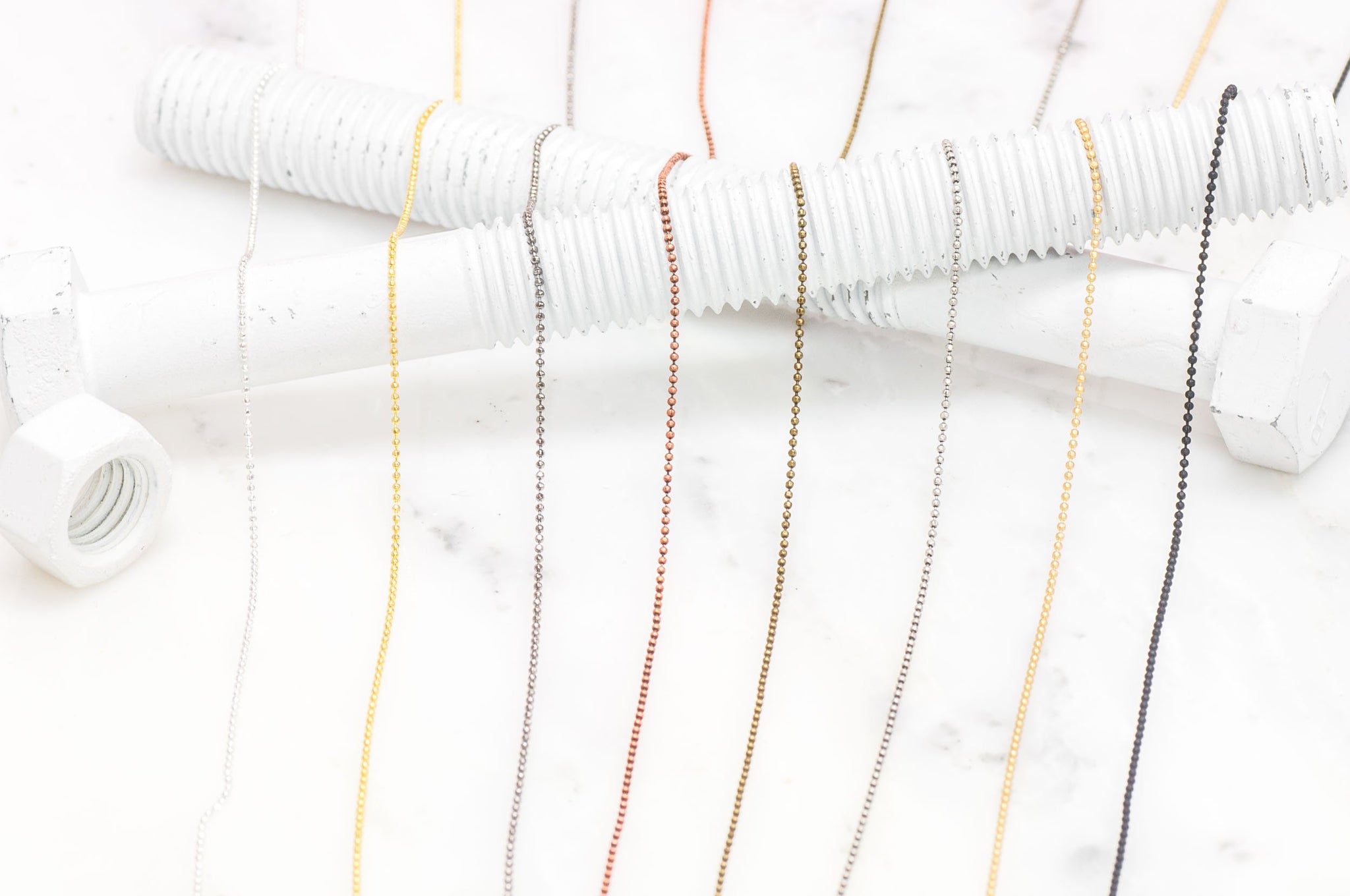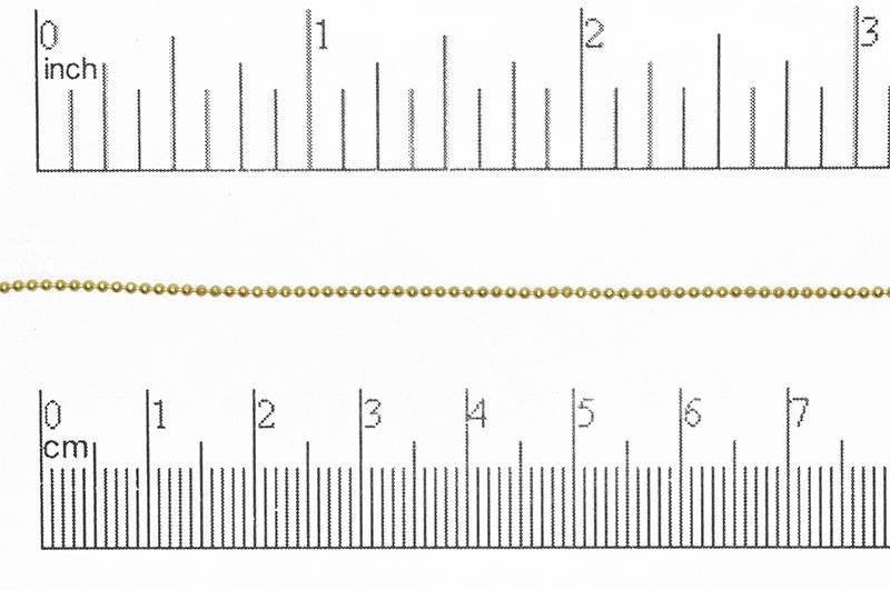 1mm diamond cut ball chain sold by the foot is one of our best selling chains to date. The 1mm ball chain looks great with everything. This chain is made from solid brass and electroplated nickel-free and lead-safe. Use our BCCON1.5 ball chain connector for the clasps.