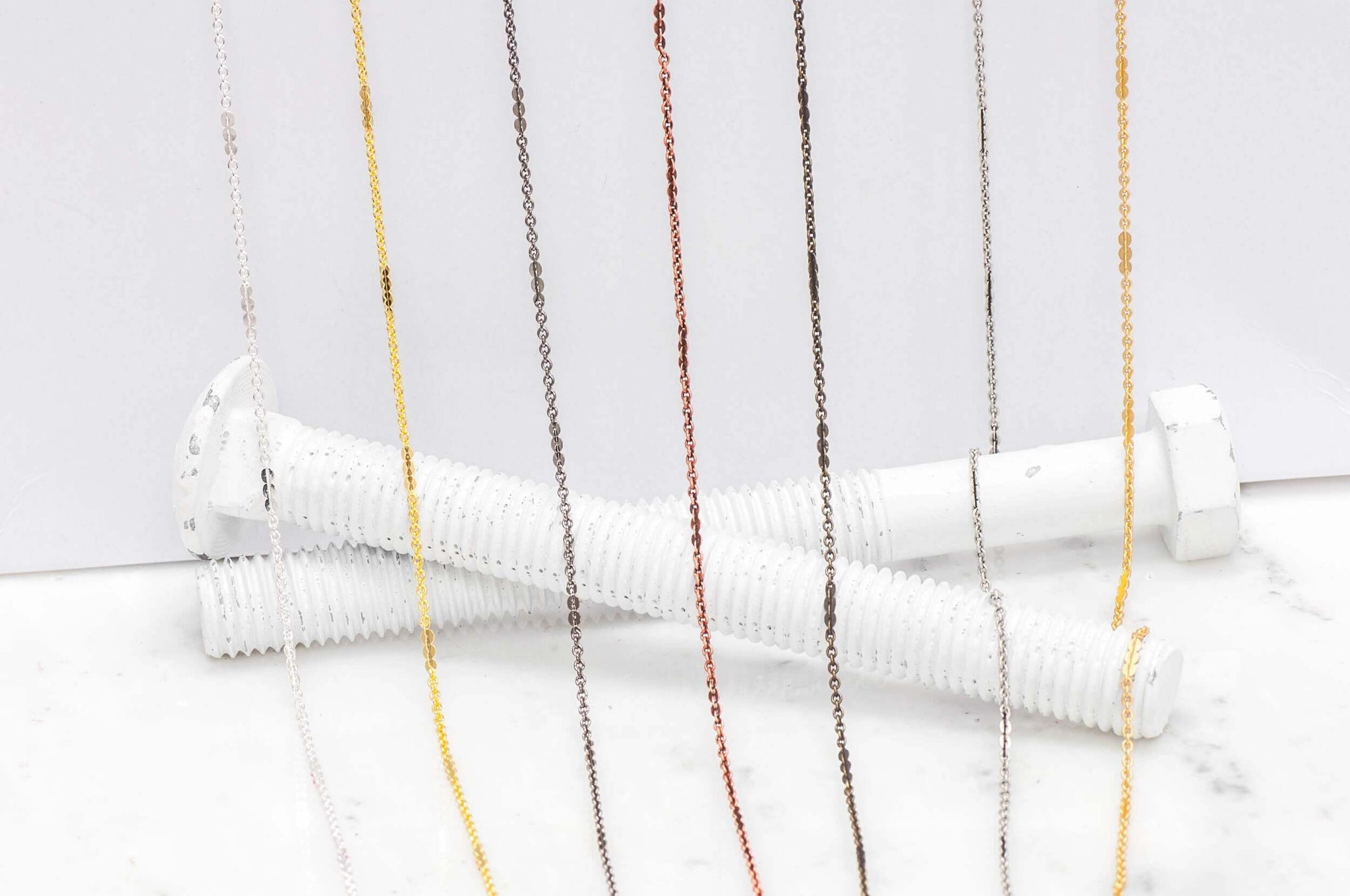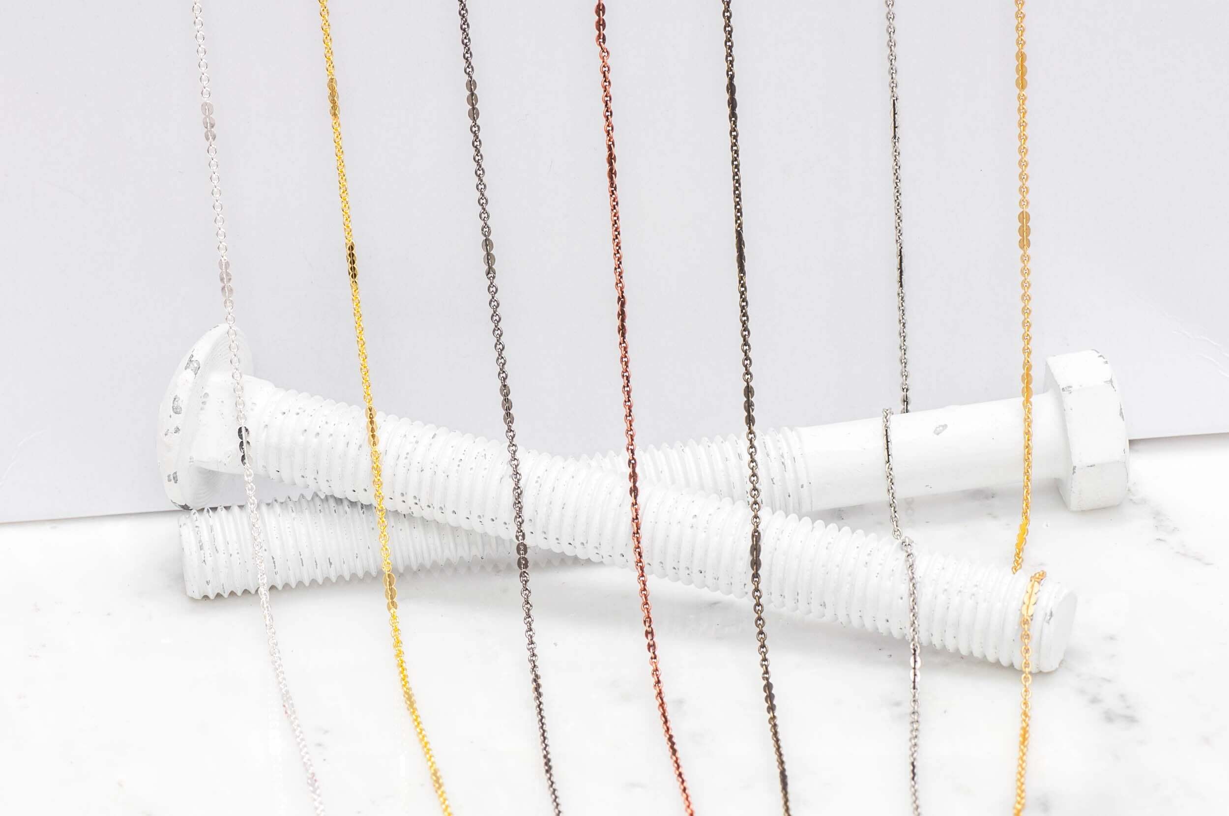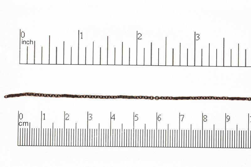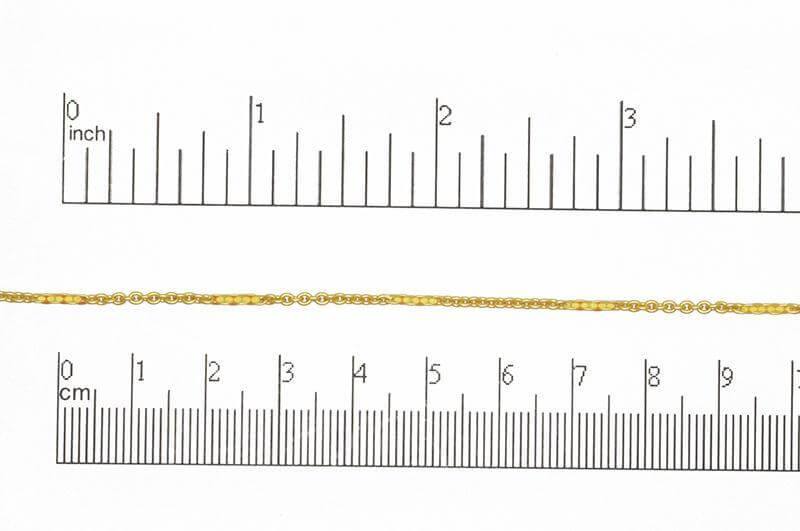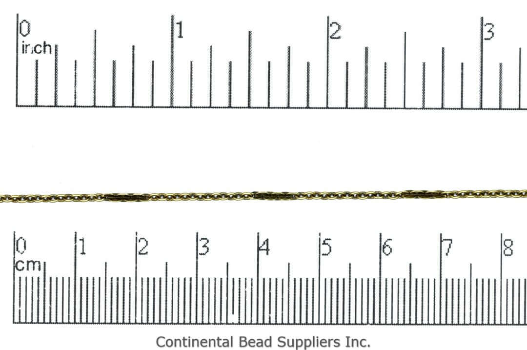 2mm x 1.5mm Petite Cable and Solder link Chain. Sold By The Foot. Ch882 is a unique cable chain because of the soldered links that are alternating into it. The 9 x1.5mm Link gives the chain a subtle yet elegant look that is durable enough to hold a good sized charm or pendant. Core metal is Brass, electroplated and nickel-free. Fits our22g jump ring (JR 3)