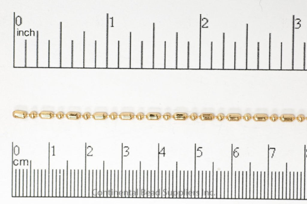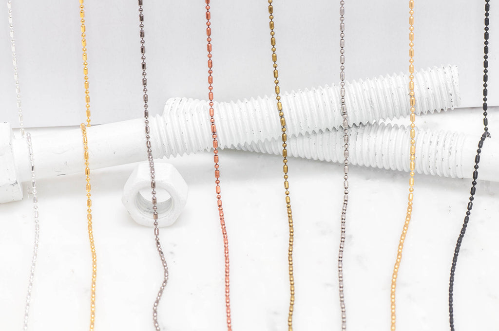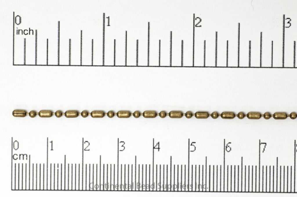 1.5mm Dot-Dash Ball Chain. Sold by the foot. (Fits BCCON1.5 Our Dot-Dash-Ball chain CH903, is designed to send a message. Inspired by Morse Code messages, the slightly elongated link (dash) is a pleasant and subtle difference when compared to a standard ball chain. This chain also works perfectly with our BCCON1.5 ball chain clasp or use a RCON2 connector to create a different ending. The chain is made from solid brass and electroplated nickel free. We love to string pendants or Charm onto this chain but have also used it in a tennis bracelet design with alternating strands of 2mm rhinestone chain. Show us your designs and tag #continentalBead Use BCCON1.5 or RCON2