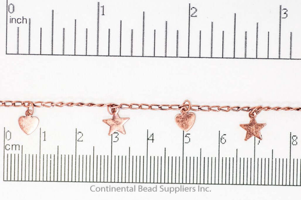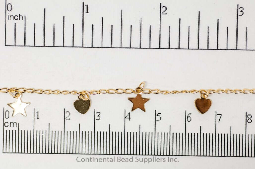 2mm x 4mm Curb Chain w/Dangling Stars & Hearts Specialty Chain Sold by The Foot - CH 907