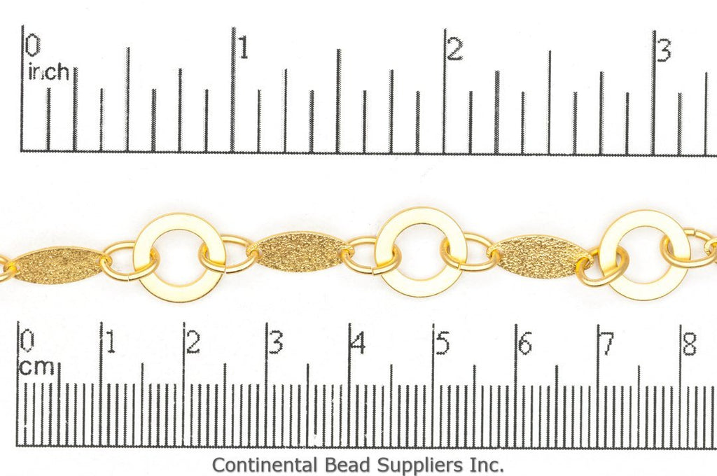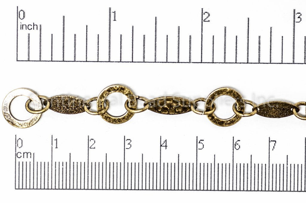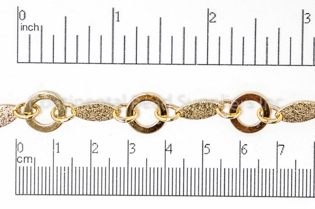 Textured Solid Oval and Open Disc Chain - Made of plated brass - Sold by the foot - Ch-913