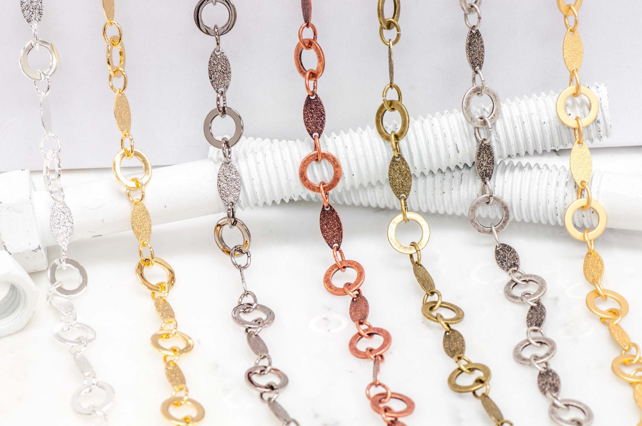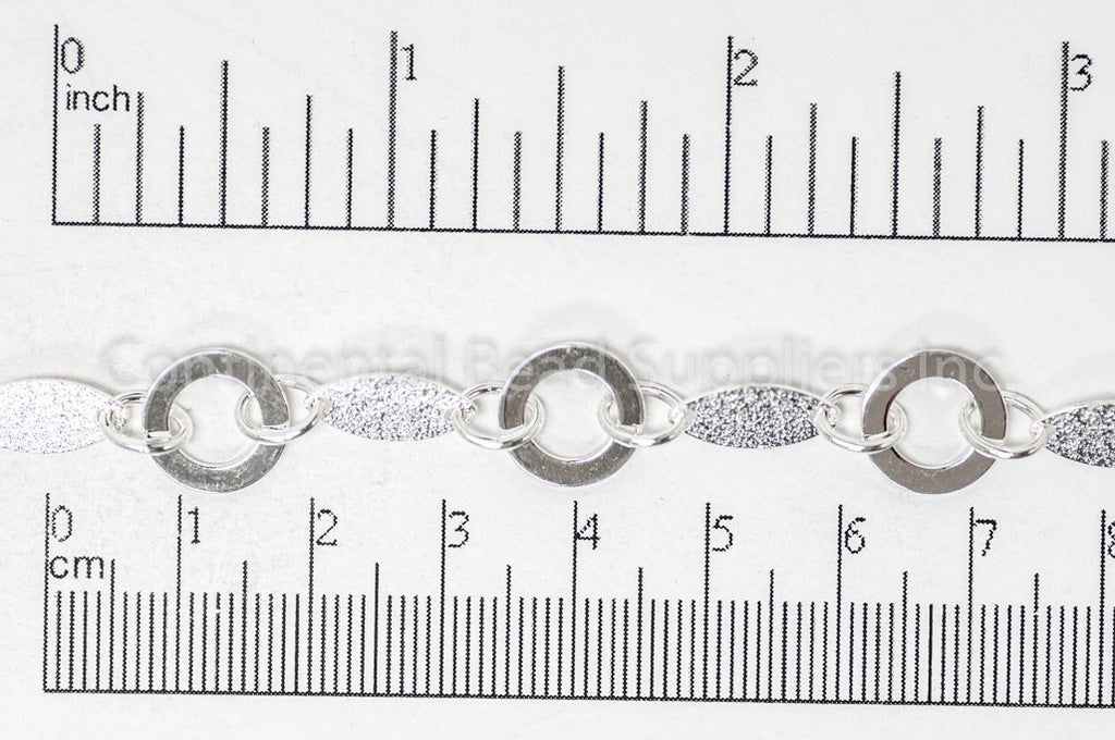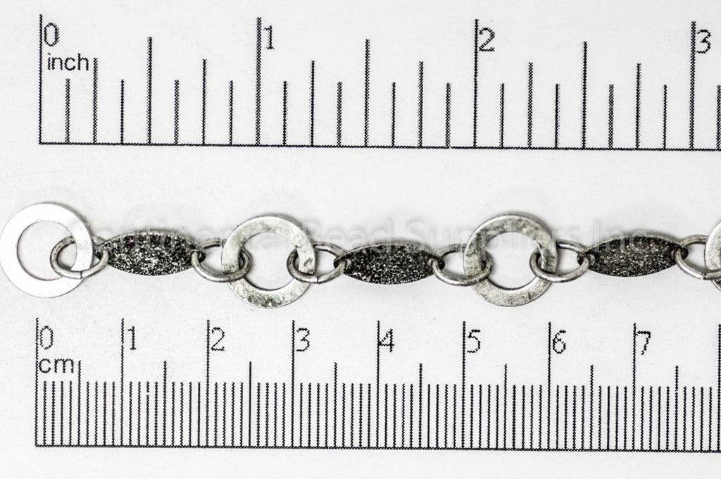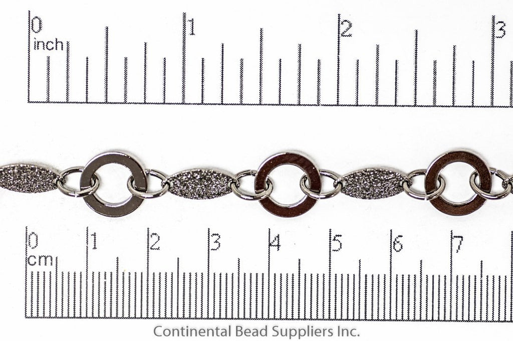 Design unique jewelry with our Textured Solid Oval and Open Disc Chain, made from plated brass, featuring textured solid ovals measuring 12mm x 6mm and open discs measuring 11mm, available in multiple finishes. Hypoallergenic, Nickel-free, and 100% lead safe with an electro-plated surface, this chain ensures safety and durability. Sold by the foot by Continental Bead Suppliers, it’s a versatile choice for hobbyists and designers across the USA and Canada seeking high-quality, customizable chain lengths.