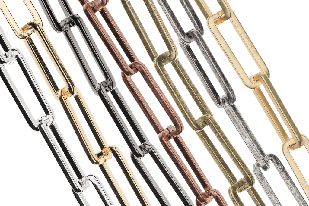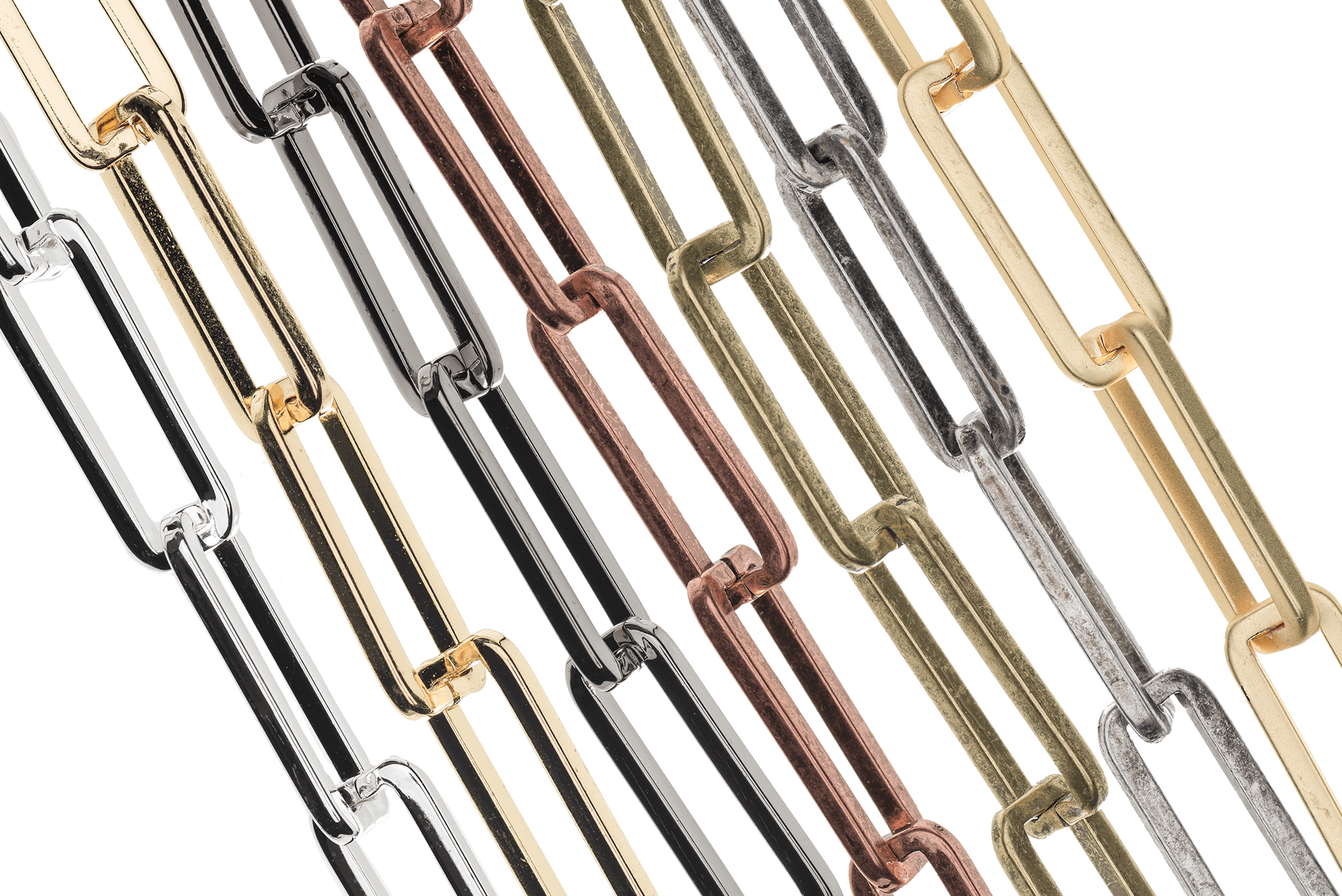 This 25mm x 9mm Box Paperclip Chain is a gorgeous addition to our vast line of jewelry chain. This is an absolute must for any bead store and we highly suggest that you carry it in all of our finishes. This chain is made from solid brass and electroplated nickel free.