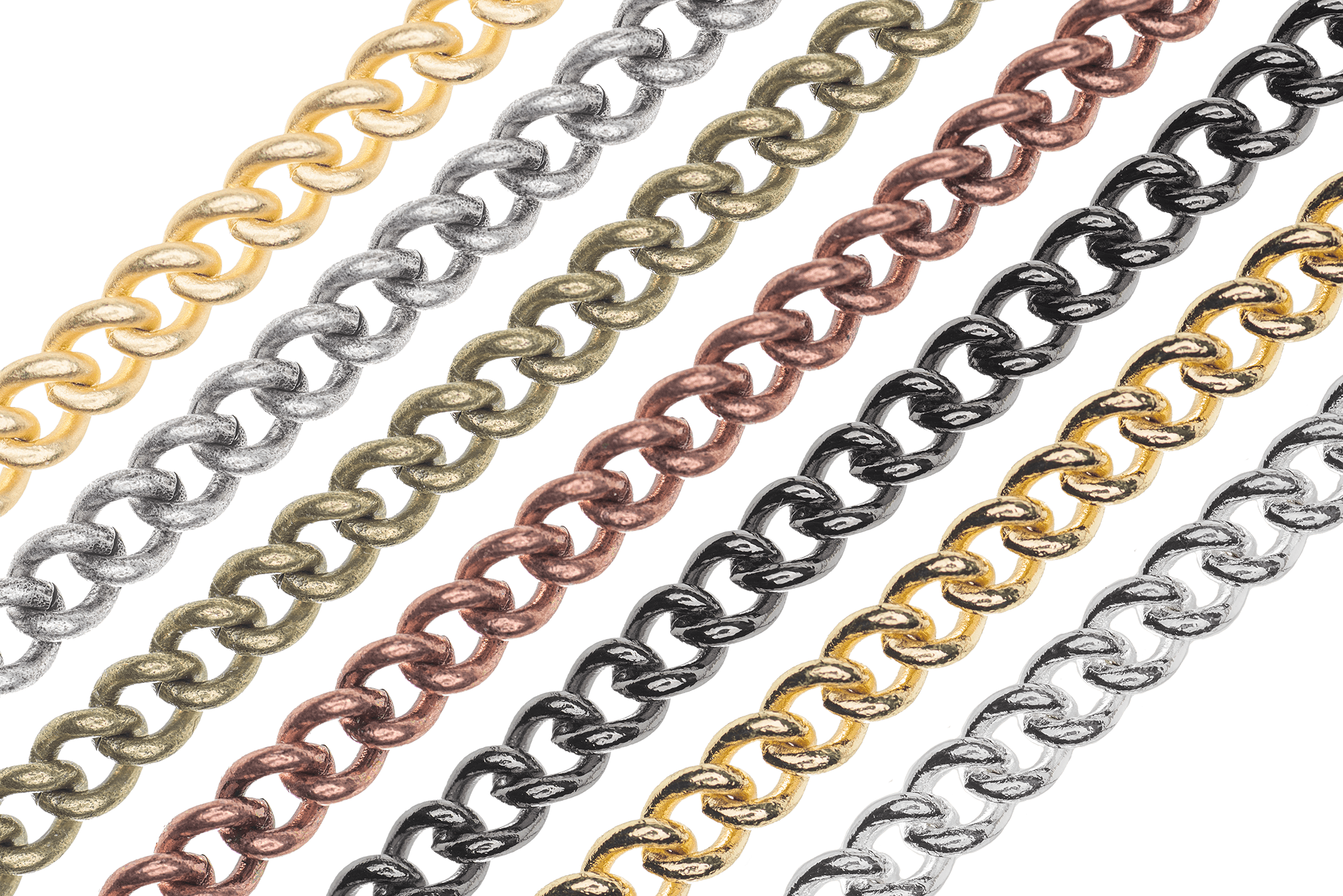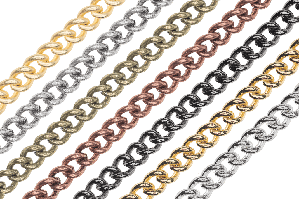 This 5.6mm Rounded Curb Chain makes the perfect necklace chain. This classic style looks fabulous with any jewelry design. You will have no problem selling this chain because it has so many applications. You name it this chain can be used for it. This is an absolute must for any bead store and we highly suggest that you carry it in all of our finishes. This chain is made from solid brass and electroplated nickel free.