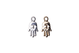 The 15.25mm x 8mm Hamsa Hand Charm is a symbolic charm that represents protection and blessings. Made from high-quality plated zinc, it features intricate detailing and is available in both Silver and Gold finishes. Electro-plated for a shiny finish, this charm is 100% lead safe, hypoallergenic, and nickel-free, ensuring safety for all skin types. Perfect for creating meaningful jewelry pieces. Sold individually.