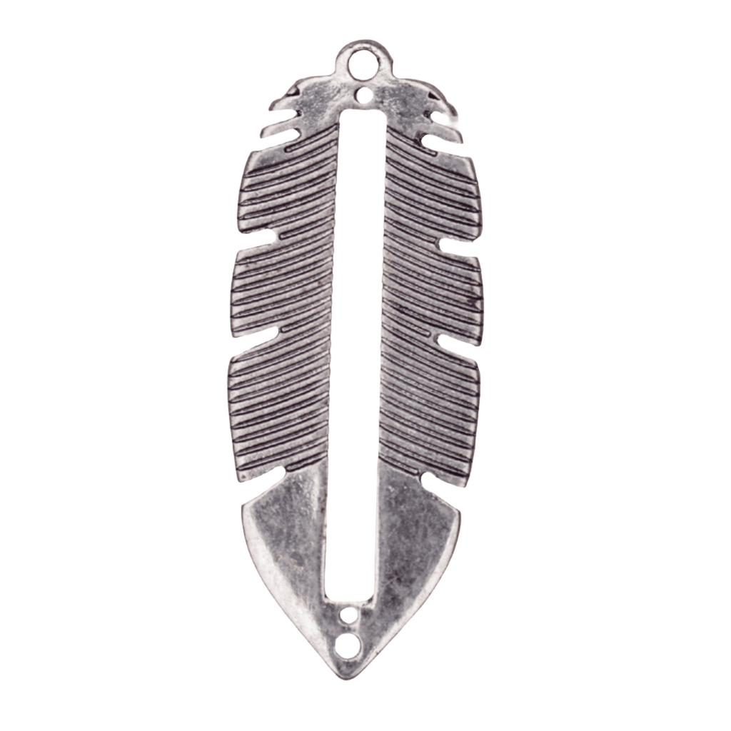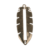 33mm x 13.5mm Centerline Seed Bead Feather Charm - Made of plated zinc - Sold individually - K154