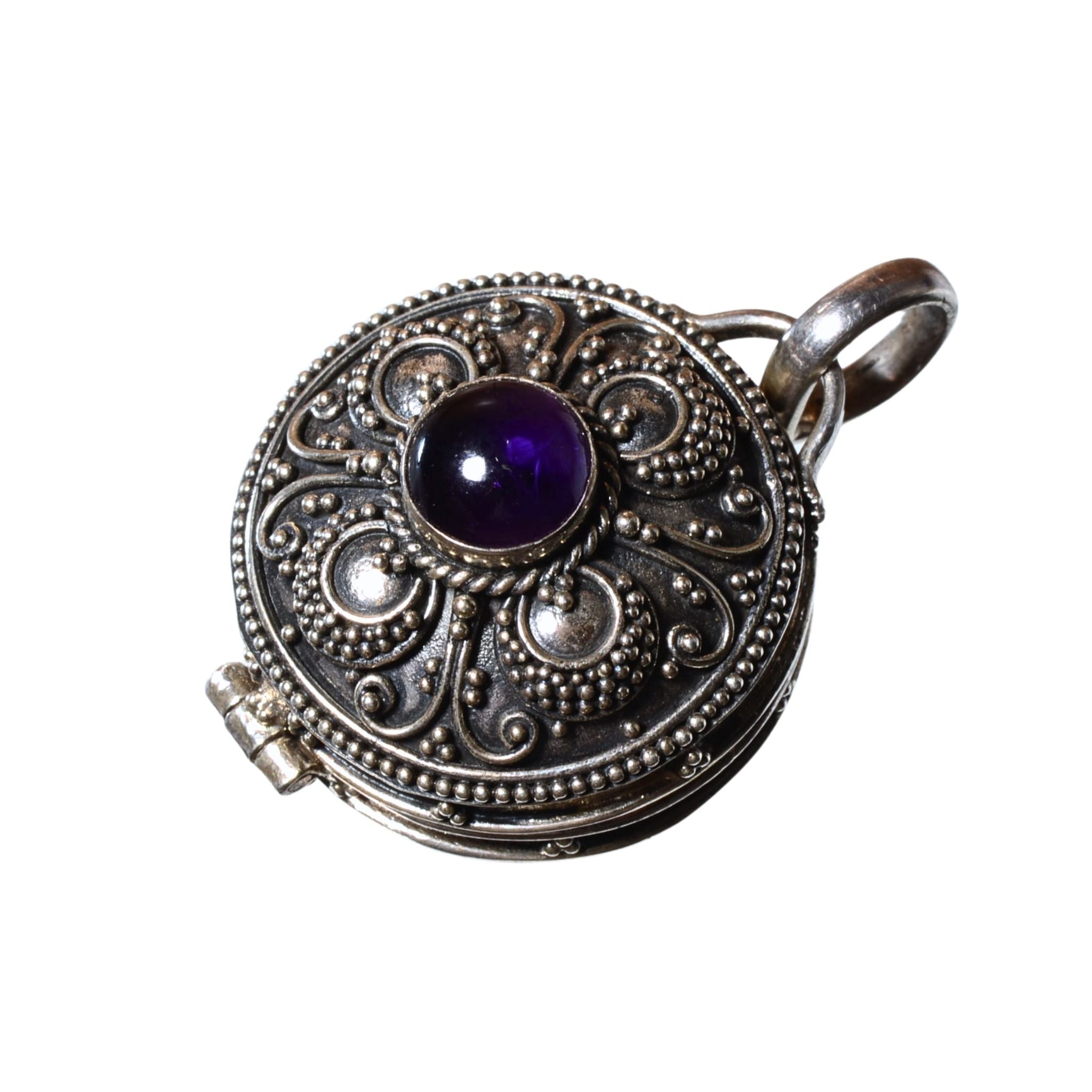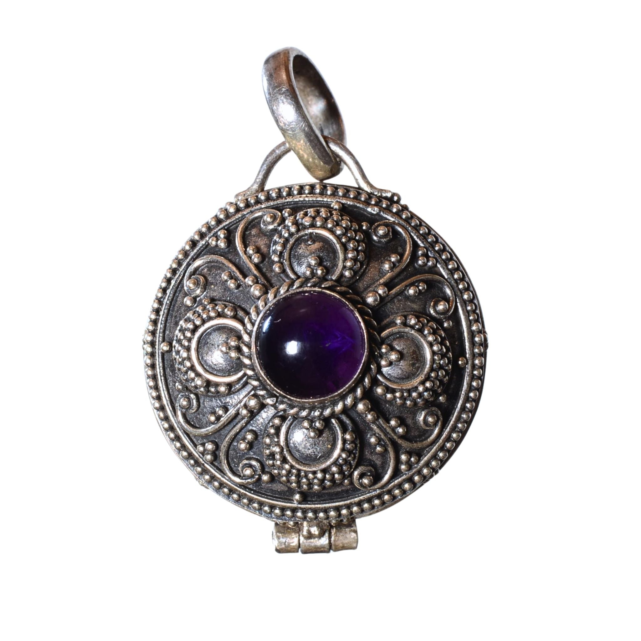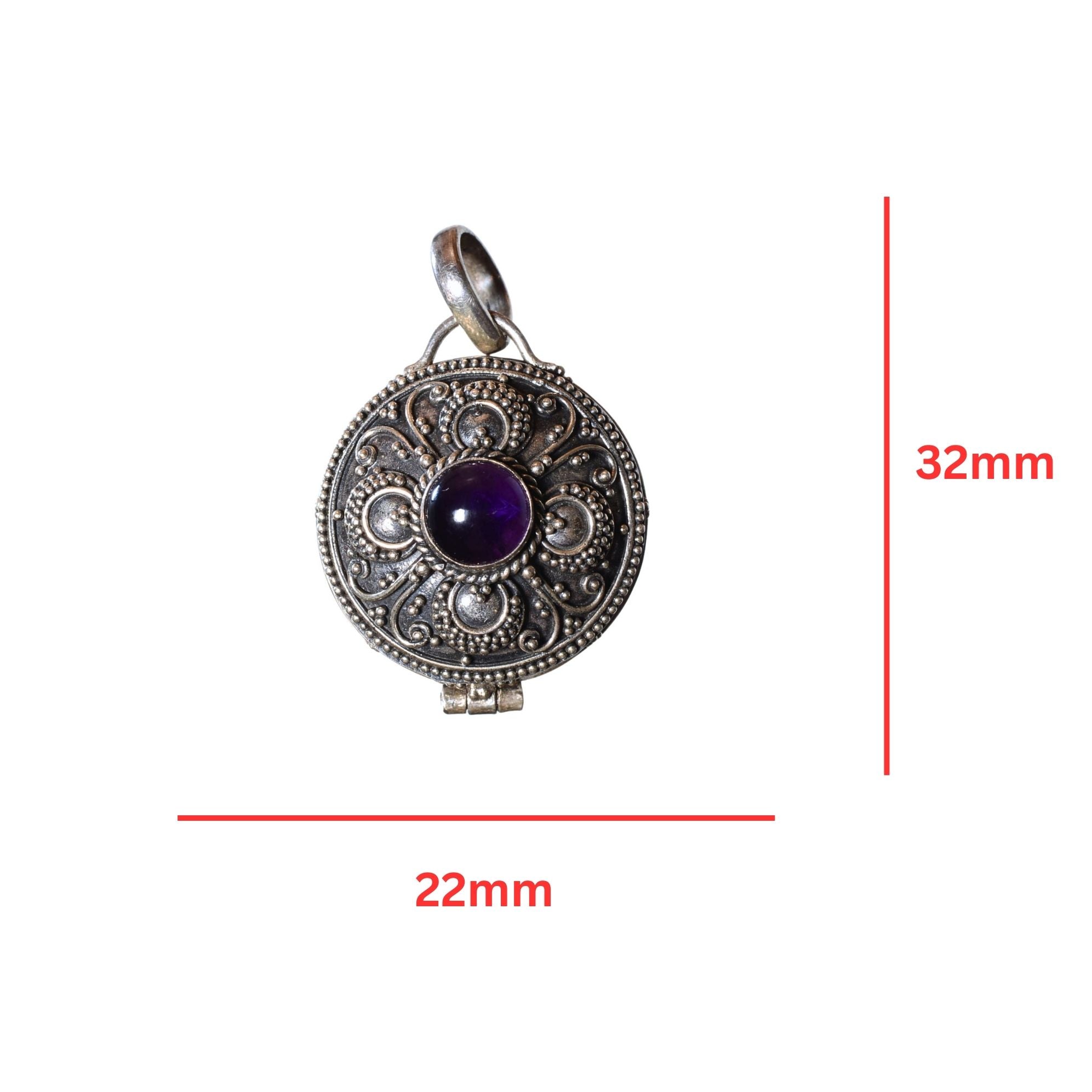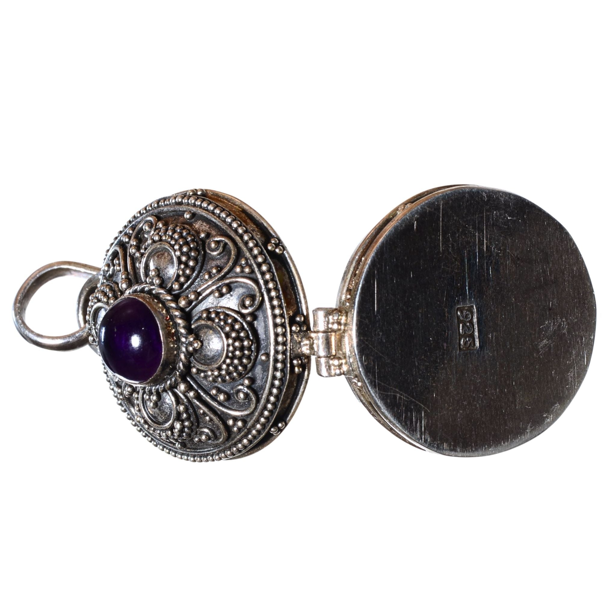 Sterling Silver Amethyst Locket Pendant – Vintage .925 Silver (32mm)